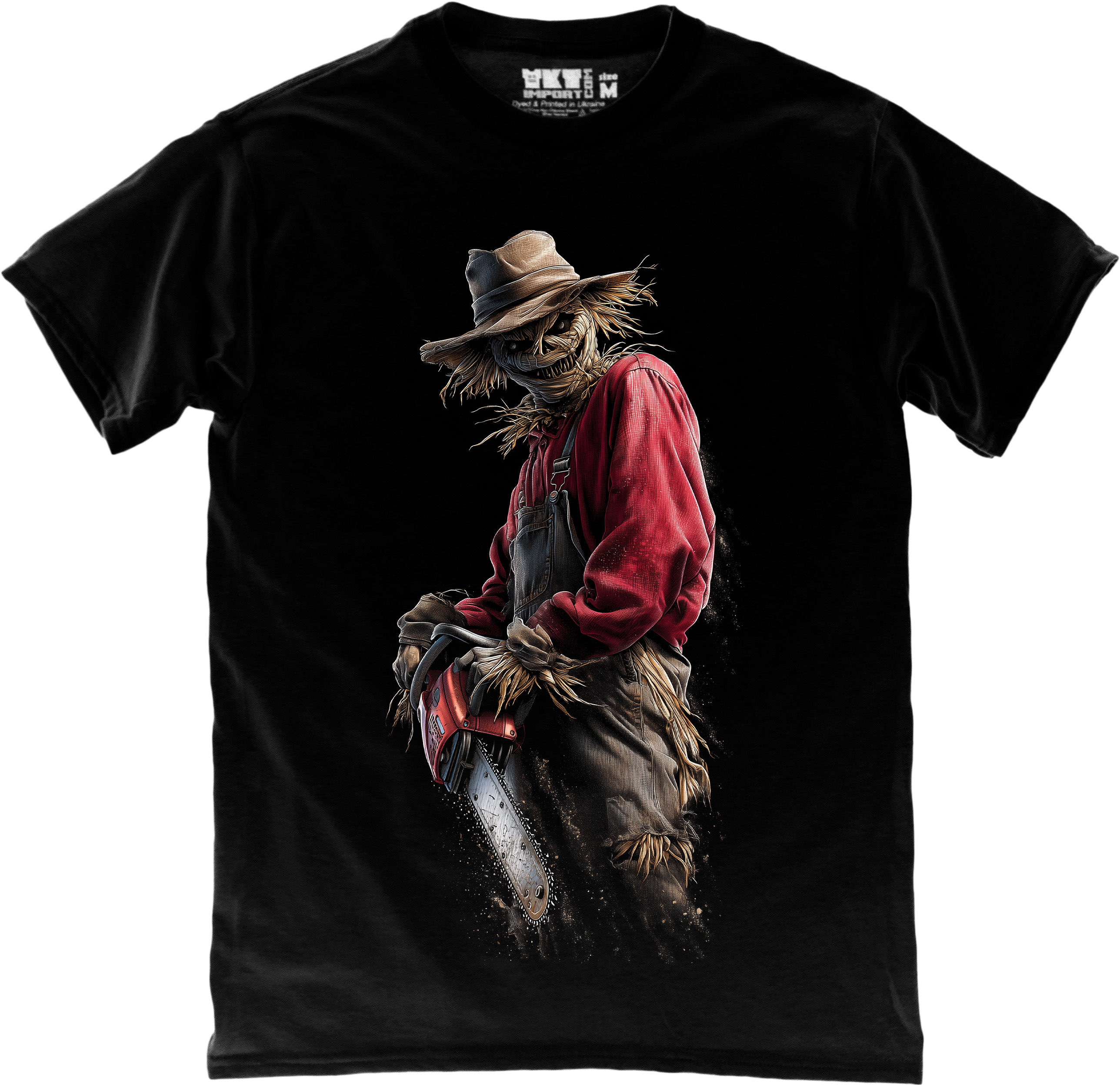 Футболка «Жнива Страху» створена для тих, хто обожнює атмосферу хоррору й хоче виділятися з натовпу. На принті — моторошне опудало в капелюсі та червоній сорочці, що тримає в руках бензопилу. Деталізоване зображення виглядає настільки реалістично, що викликає мурахи по шкірі. Ідеально підійде для шанувальників жахів, Хелловіну чи тих, хто любить сміливо заявляти про свій стиль.
