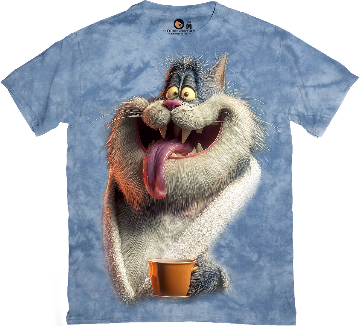 Якщо ранок без кави — катастрофа, цей котик тебе зрозуміє! Футболка “Coffee Cat” — це вибух настрою й енергії. Кумедний пухнастий кіт у халаті з чашкою кави нагадує, що іноді кава — єдиний спосіб прокинутися. М’яка бавовна, приємний небесно-блакитний фон і об’ємний принт створюють стиль, що заряджає позитивом з першого ковтка (і погляду).