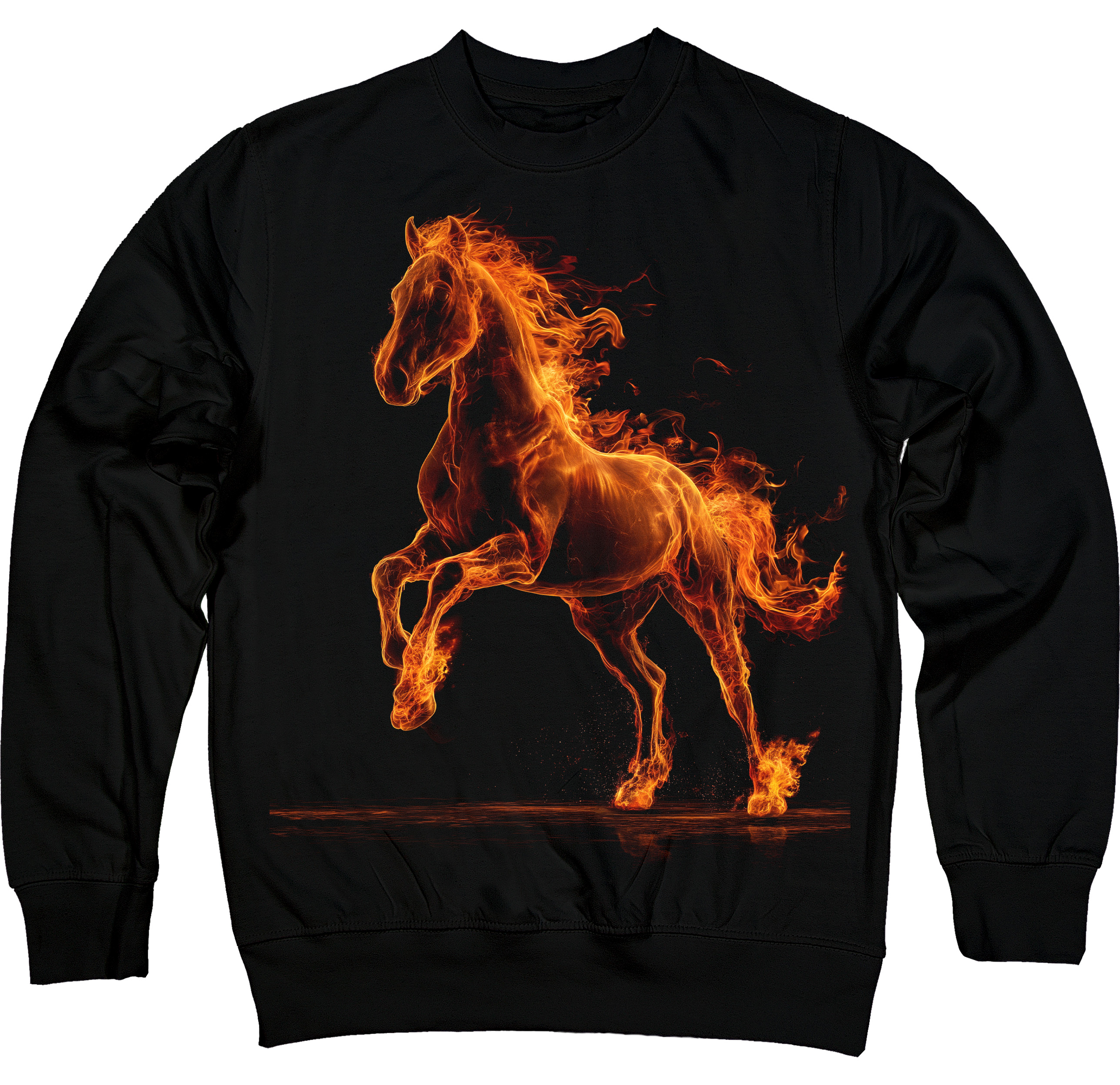 Чорний світшот із вражаючим принтом коня з полум’я. Яскравий вогняний дизайн символізує свободу, силу та пристрасть. Зручний і теплий — для тих, хто живе у власному ритмі.
