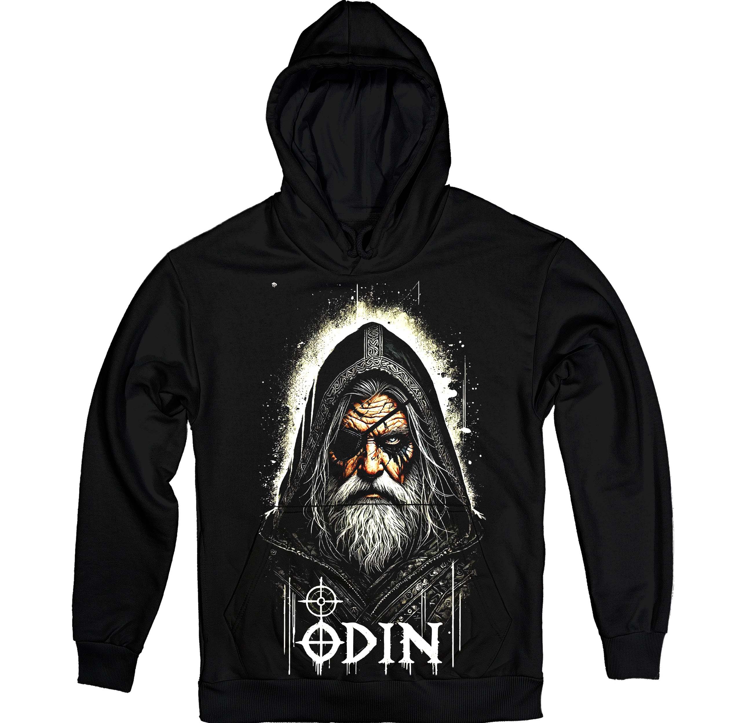 Чорна худі з потужним образом Одіна — символом сили, мудрості та волі воїна. Ідеально для тих, хто цінує дух північних легенд.