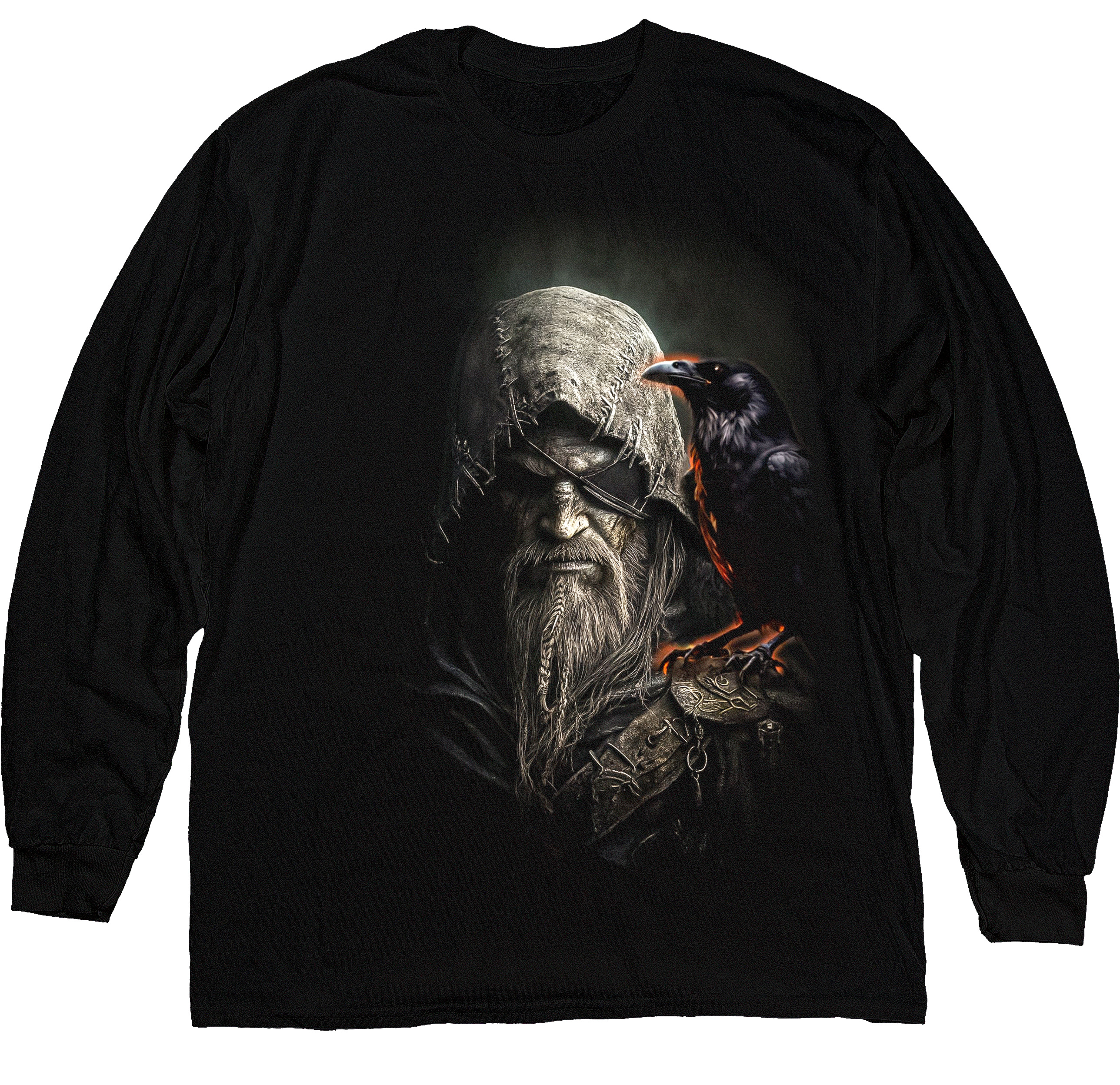 Лонгслів із могутнім образом Одіна та його ворона — символів мудрості, влади й духу Півночі. Ідеальний для тих, хто цінує силу, містицизм і скандинавську естетику.