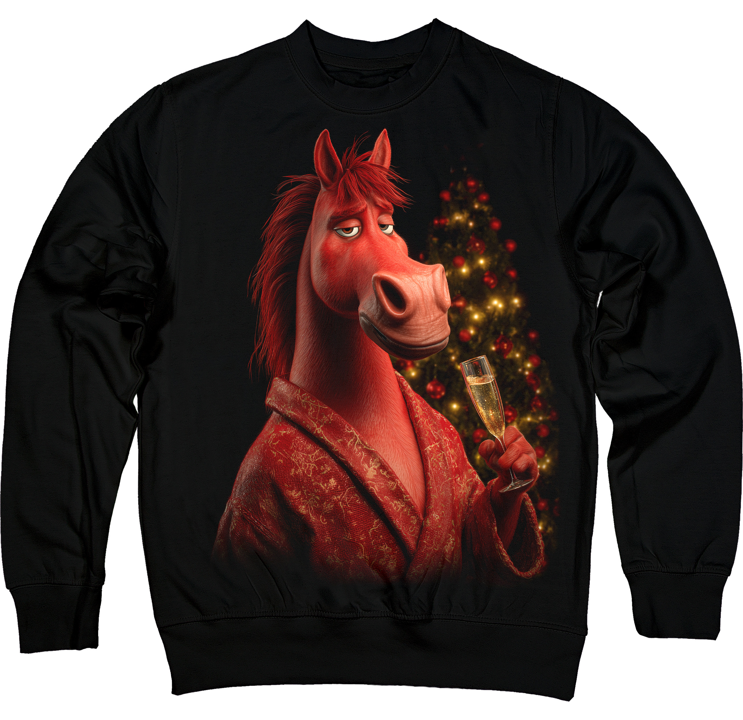 Світшот із веселим конем у халаті — справжній символ святкового чилу! Ідеальний для вечірки, дому чи просто гарного настрою під ялинкою.