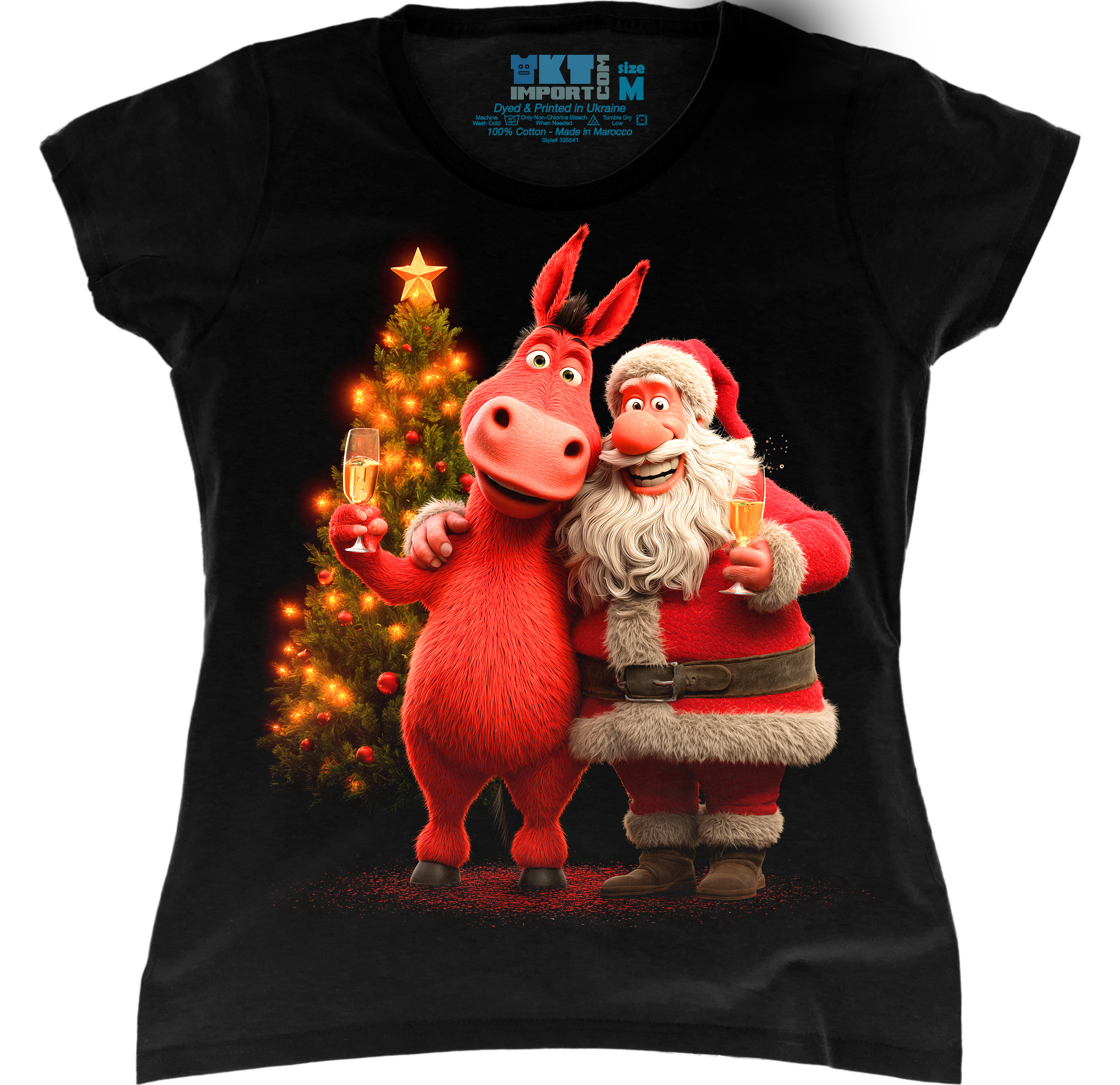 Футболка жіноча - Різдвяний Кінь і Санта – 8500478-black