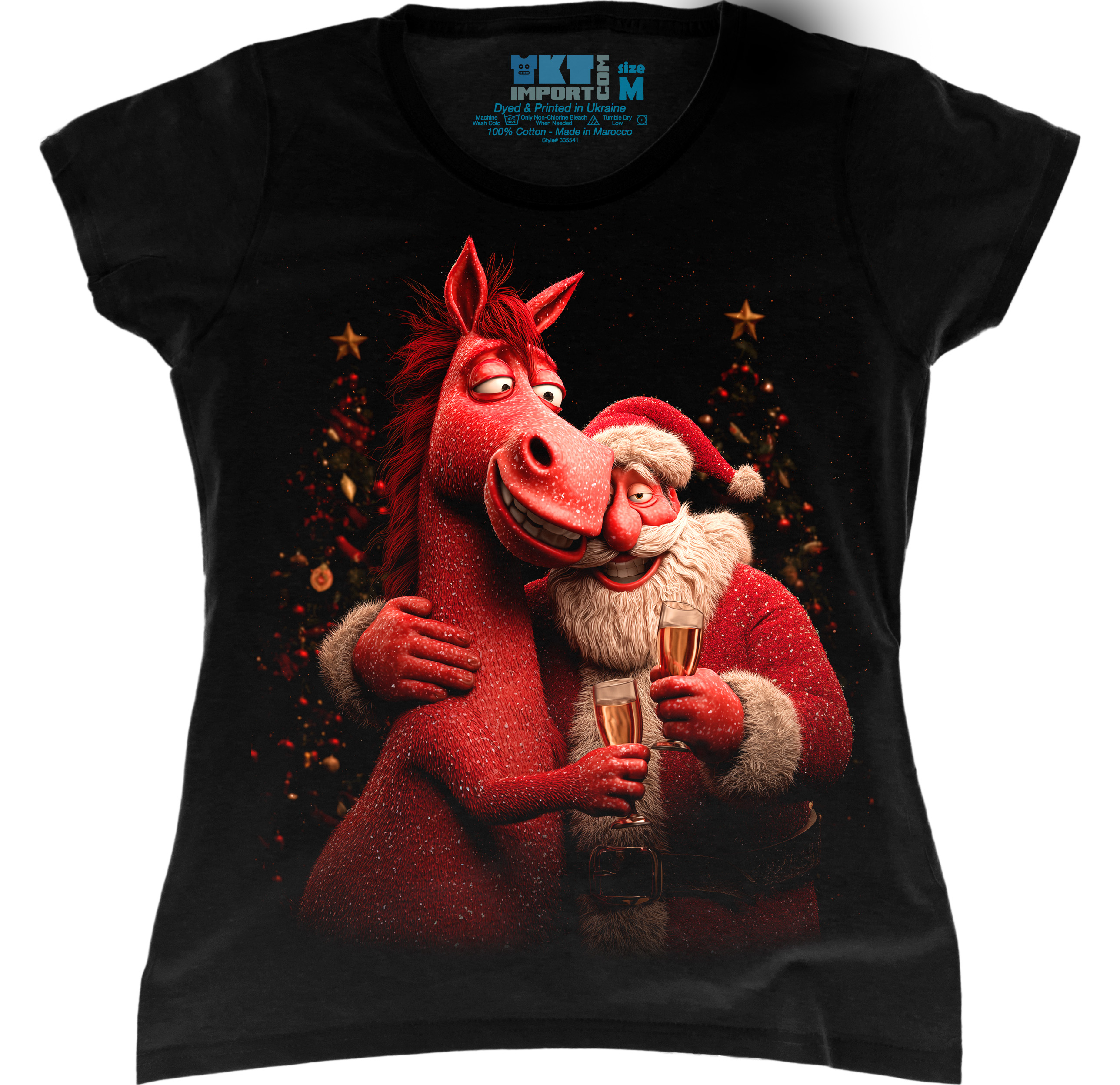 Коли Санта каже “один келих і додому”, але Кінь уже замовив другу пляшку. Ця футболка — чистий святковий вайб: блиск, посмішки й трішки шампанського. Для тих, хто любить свята з гумором і знає, що Різдво — це про друзів, тепло й гарний настрій.