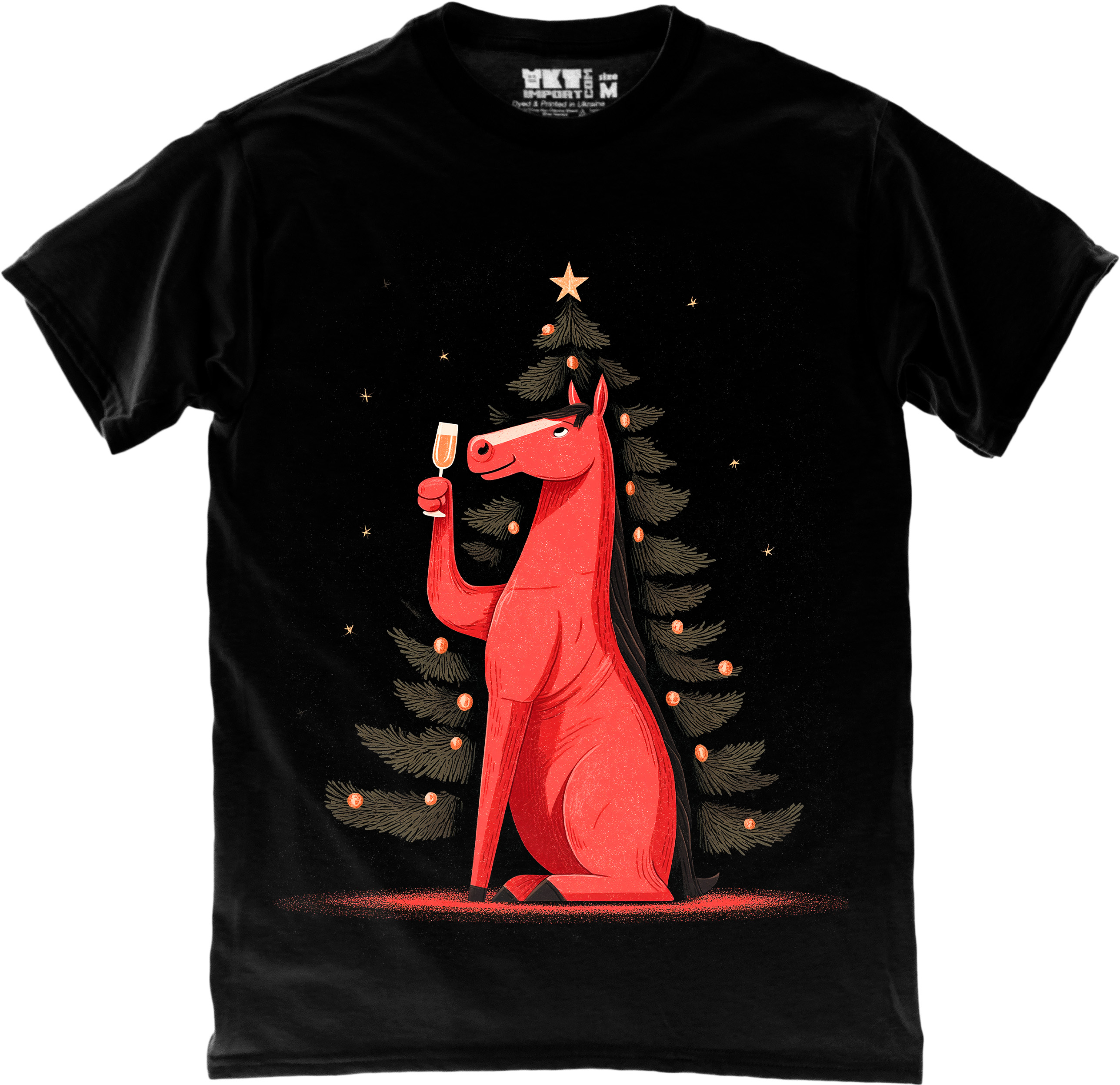Коли Новий рік — це не просто дата, а стан душі. Наш святковий Кінь з келихом шампанського вже готовий до вечірки під ялинкою! Ця футболка створена для тих, хто святкує з посмішкою, легкістю і хорошим настроєм. М’яка бавовна, якісний принт DTG і максимум позитиву — ідеальний подарунок для себе або друга.