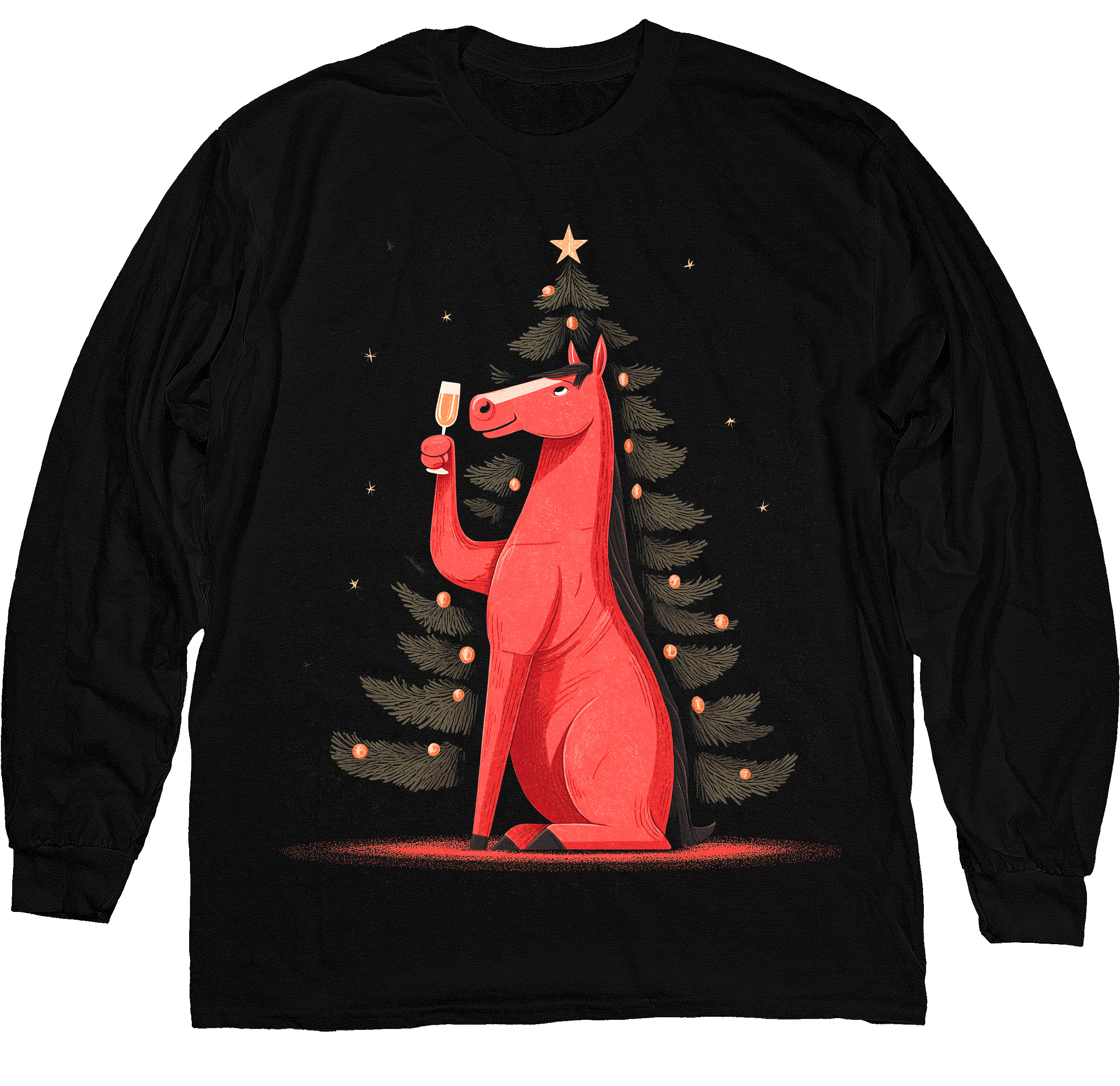 Коли навіть Кінь знає: Новий рік — чудова нагода підняти келих. Святковий лонгслів із милим принтом червоного коня під ялинкою створений для тепла, затишку й гарного настрою. Ідеальний вибір для святкових вечірок, подарунків або просто домашнього чілу з шампанським у руці. М’яка тканина, зручний крій і стійкий друк DTG — щоб свято тривало довше.