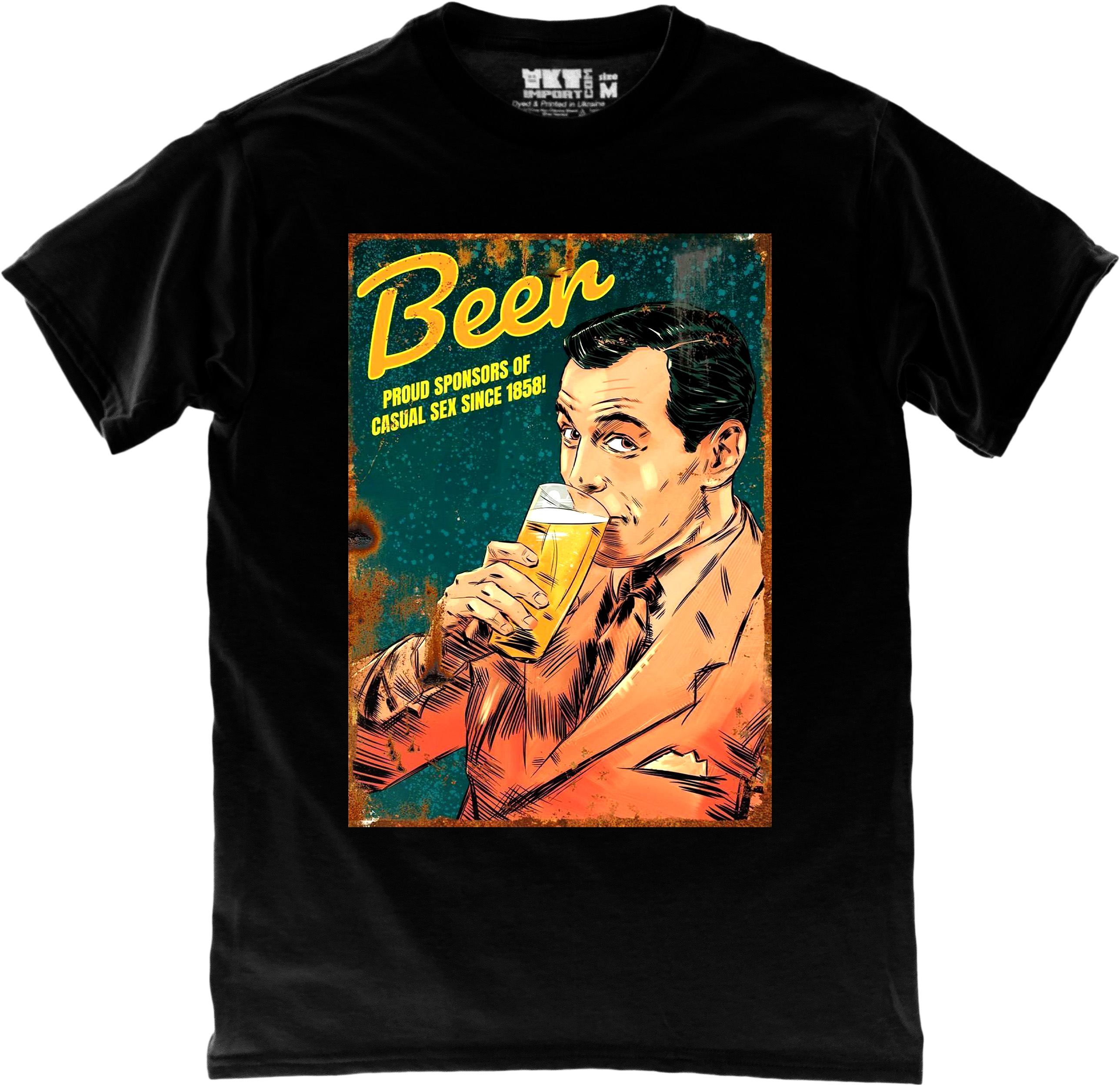 Яскрава вінтажна футболка у стилі ретро постера для тих, хто цінує хороший гумор. Дизайн показує чоловіка з келихом пива та жартівливим написом у стилі 60-х. Ідеальний варіант для вечірок, подарунків друзям, поціновувачів пива та любителів крутого олдскульного стилю. М’яка тканина, насичені кольори та принт, який точно приверне увагу й викличе усмішку.