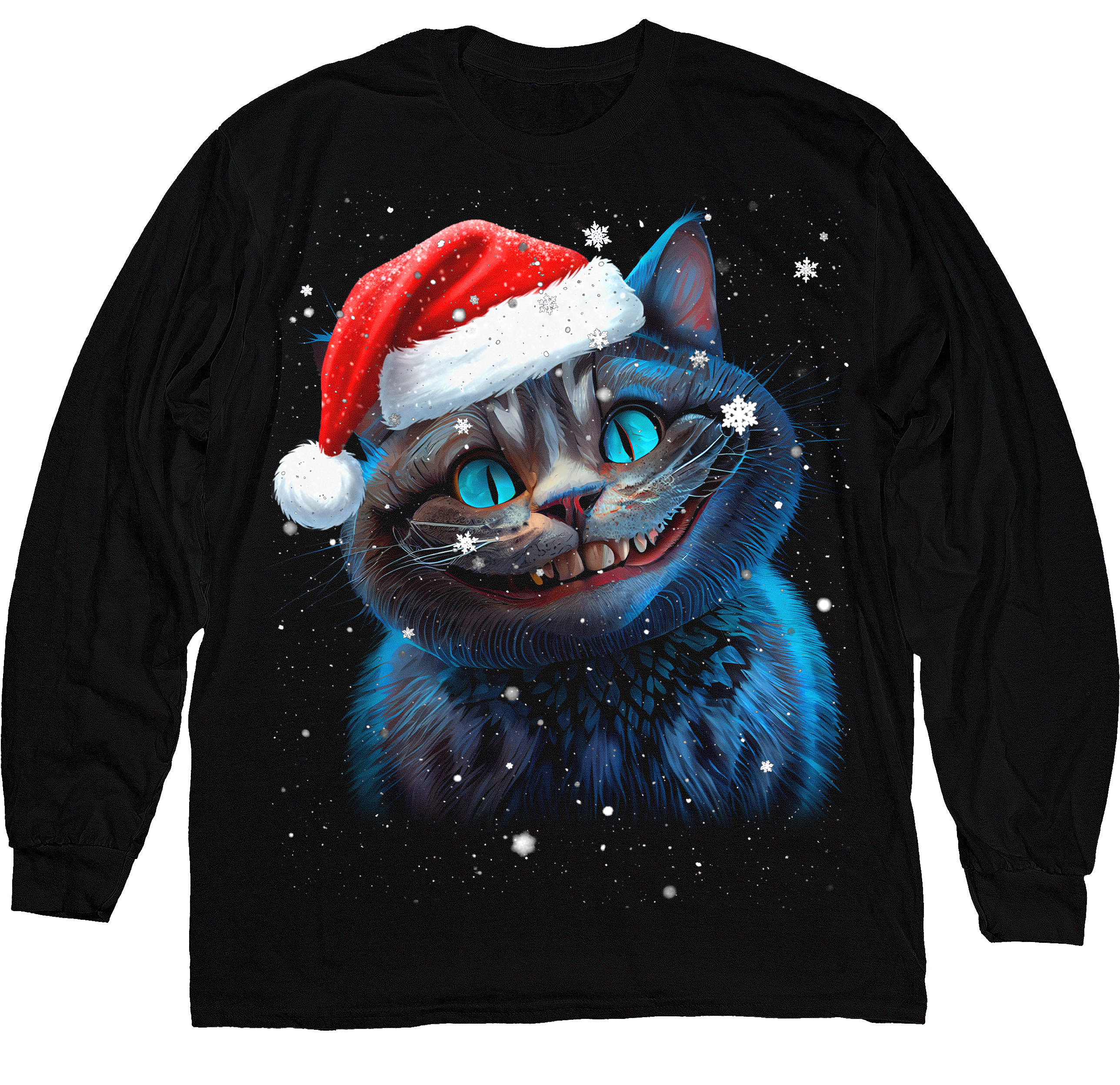 Лонгслів - Різдвяний Чеширський Кіт у Санта-Шапці – 8000484-black