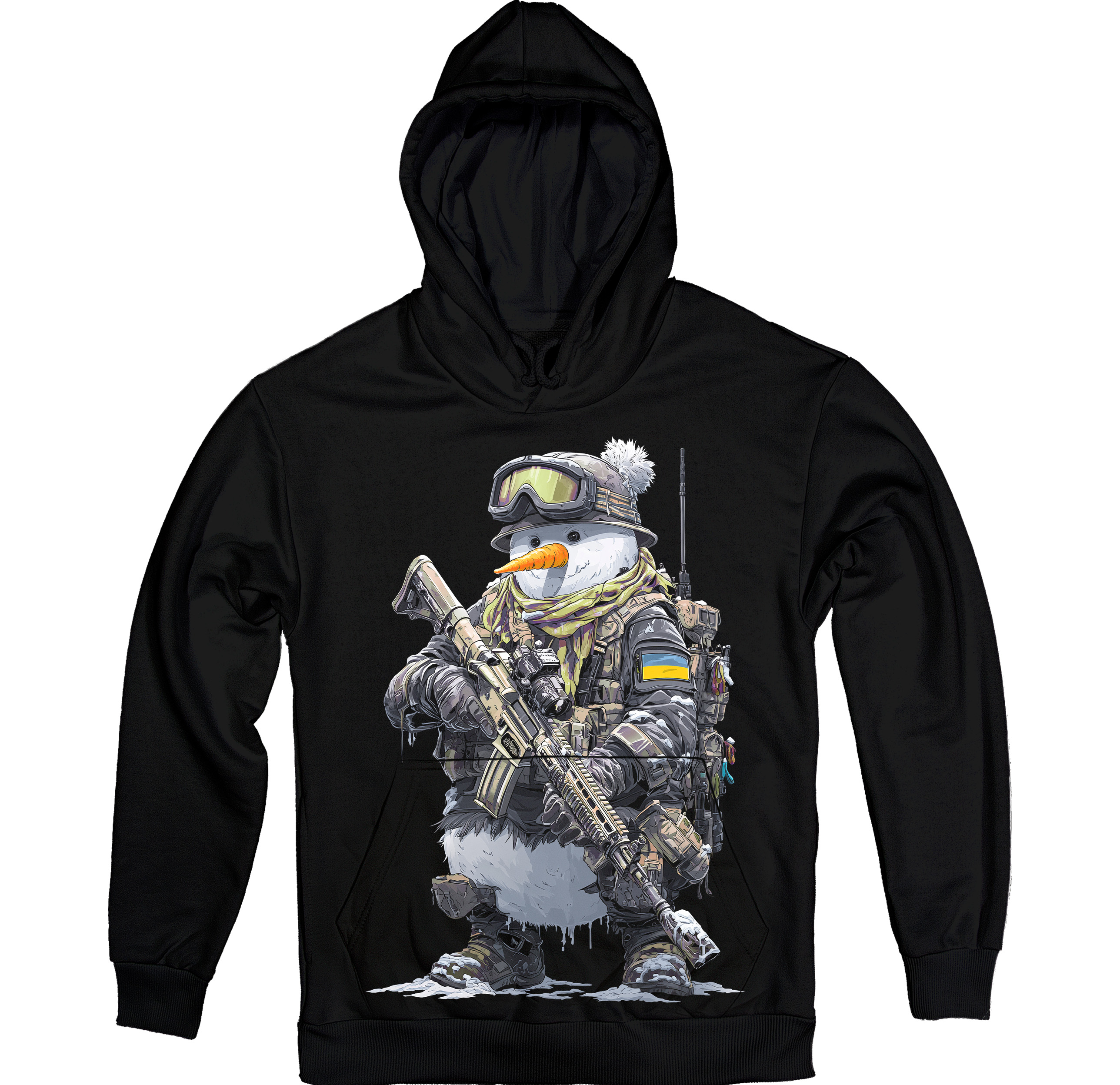Тактичний сніговик у зимовому камуфляжі — стиль для тих, хто цінує силу, стійкість і український дух. Деталізований принт із військовим спорядженням робить худі яскравим і унікальним вибором на холодний сезон.