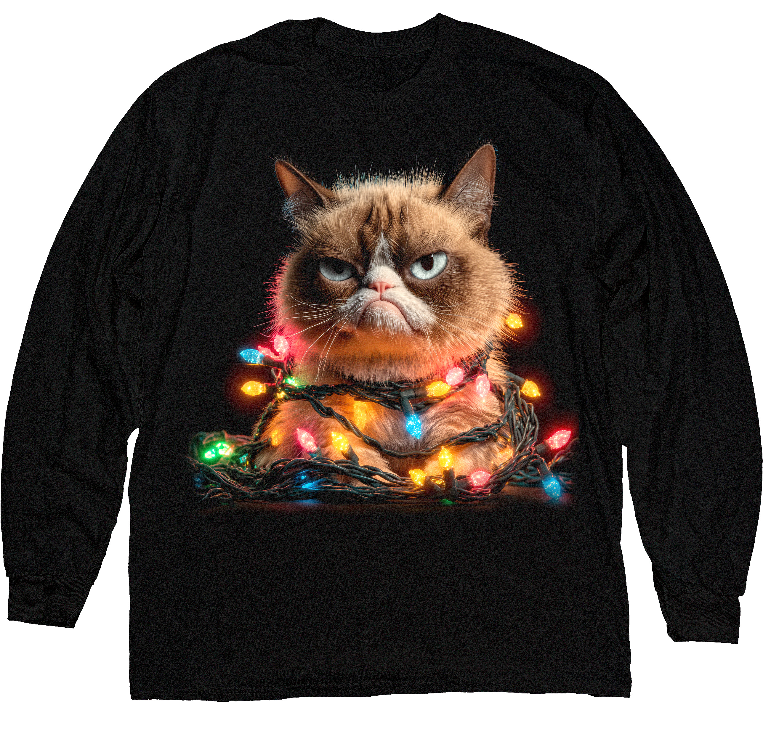 Лонгслів - Грумпі-Кіт у Гірляндах – 8000489-black