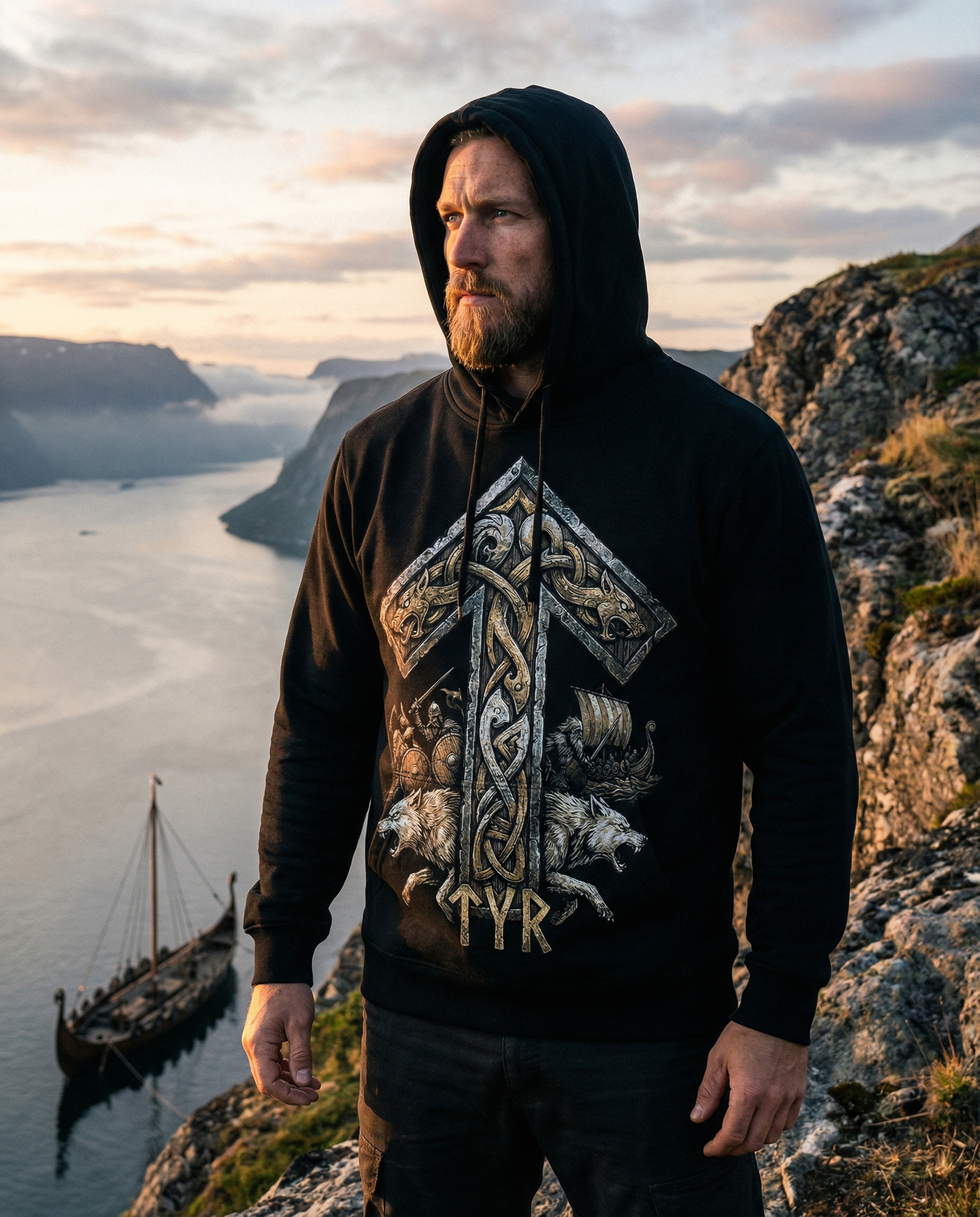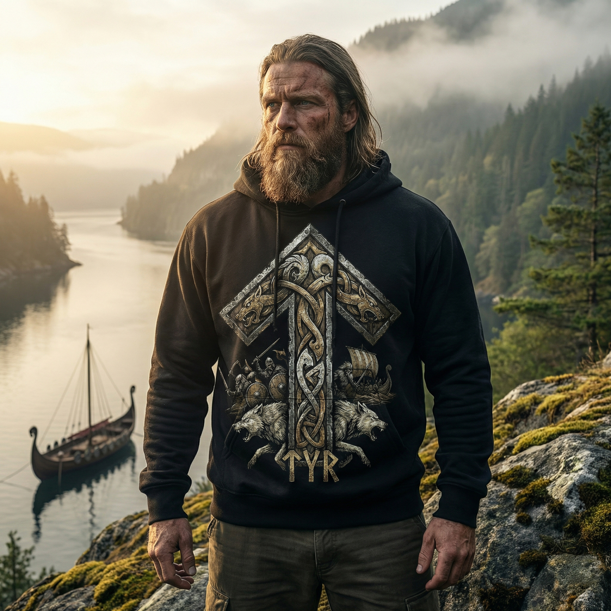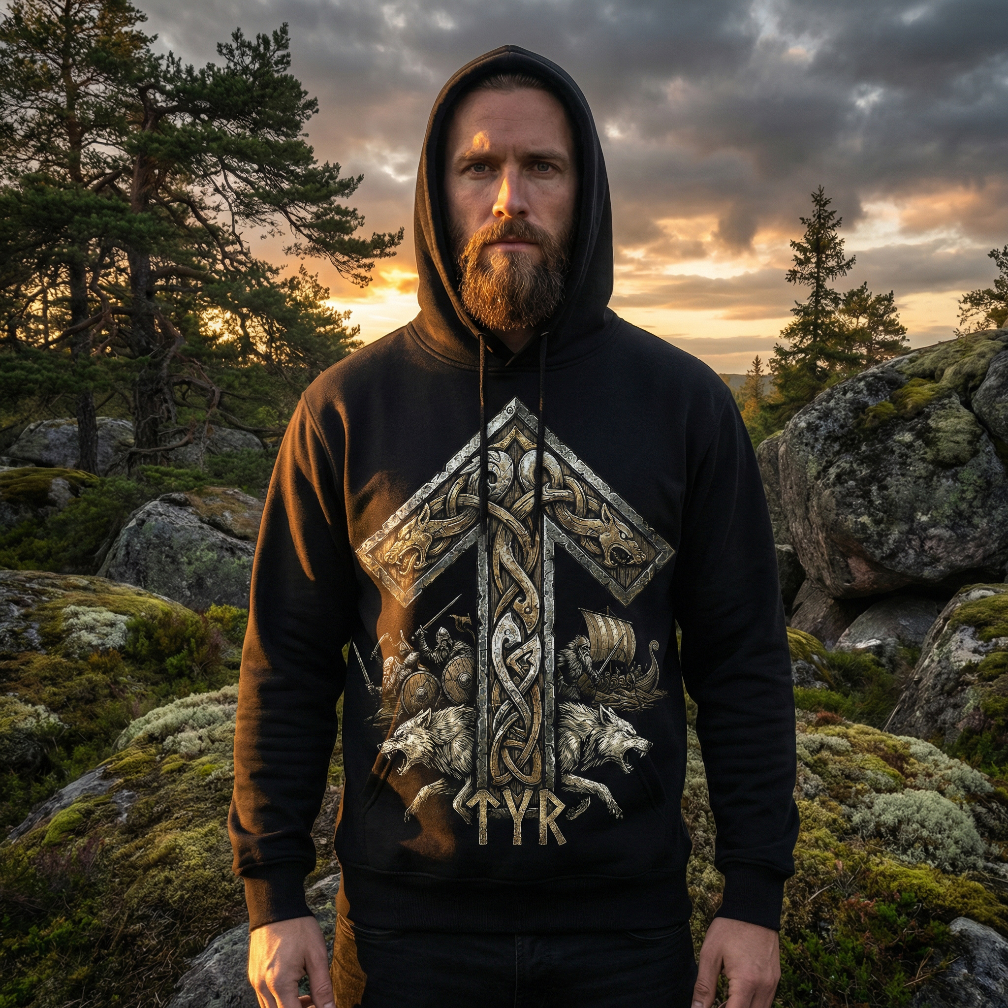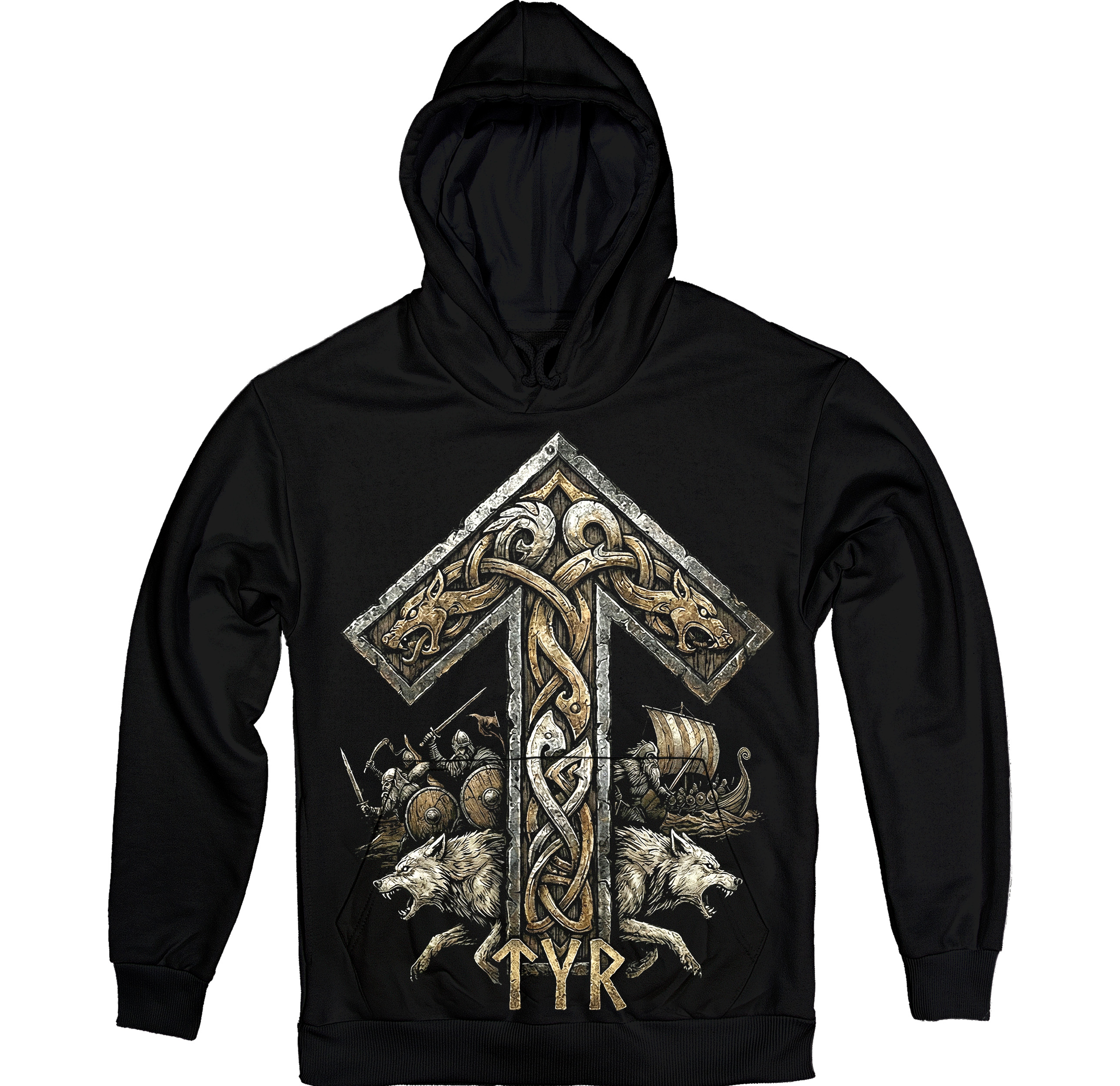 Худі з руною Тіваз — символом воїнського шляху, честі та внутрішньої дисципліни. Для тих, хто тримає напрям.