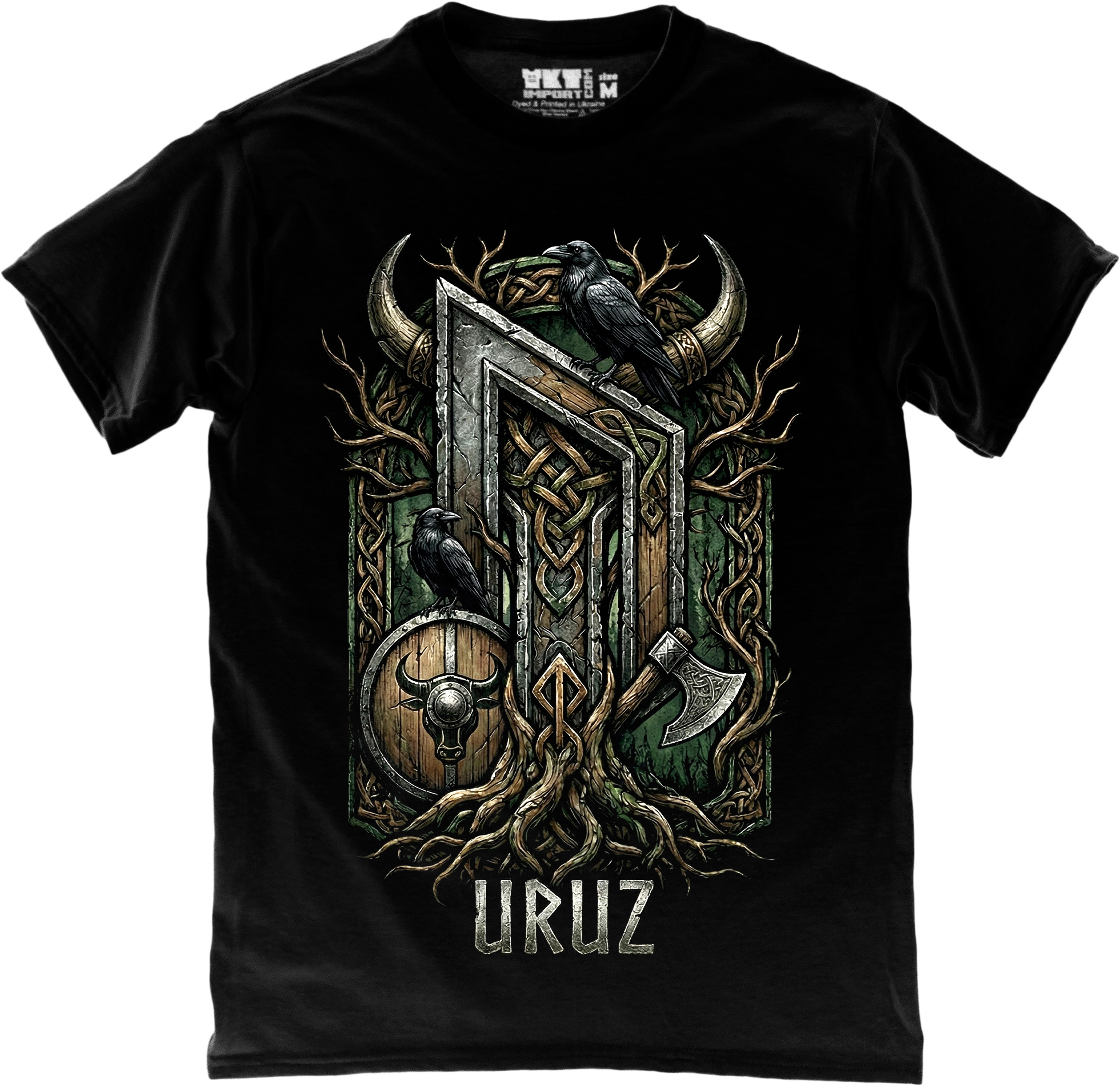 Цей дизайн зосереджений на балансі тіла й духу. Уруз — руна тих, хто витримує, піднімається і продовжує шлях.