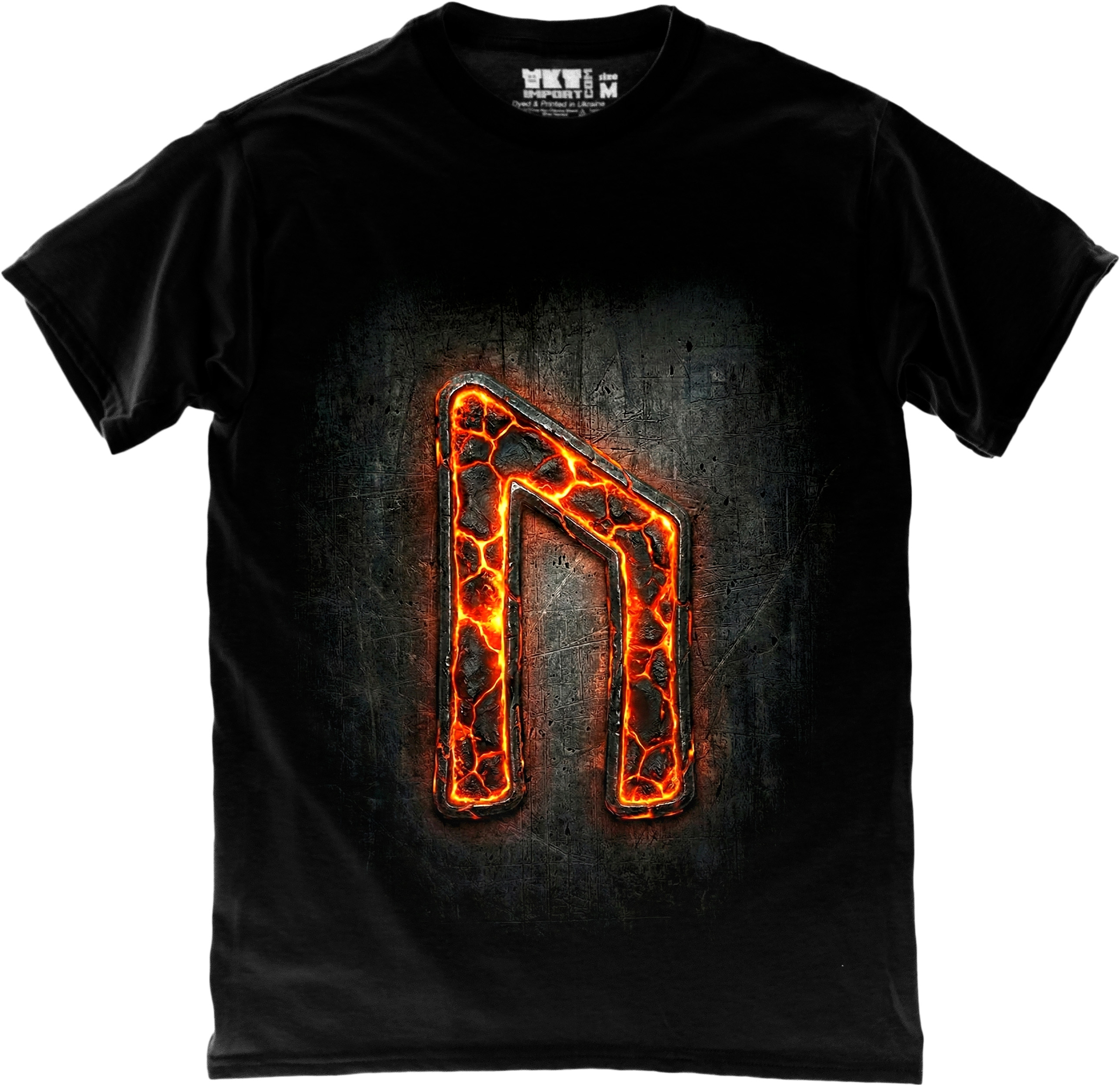 Футболка з руною Уруз (ᚢ) — символом первинної сили, витривалості та внутрішньої енергії. Вогняний знак, що уособлює незламність і ресурс рухатися далі.