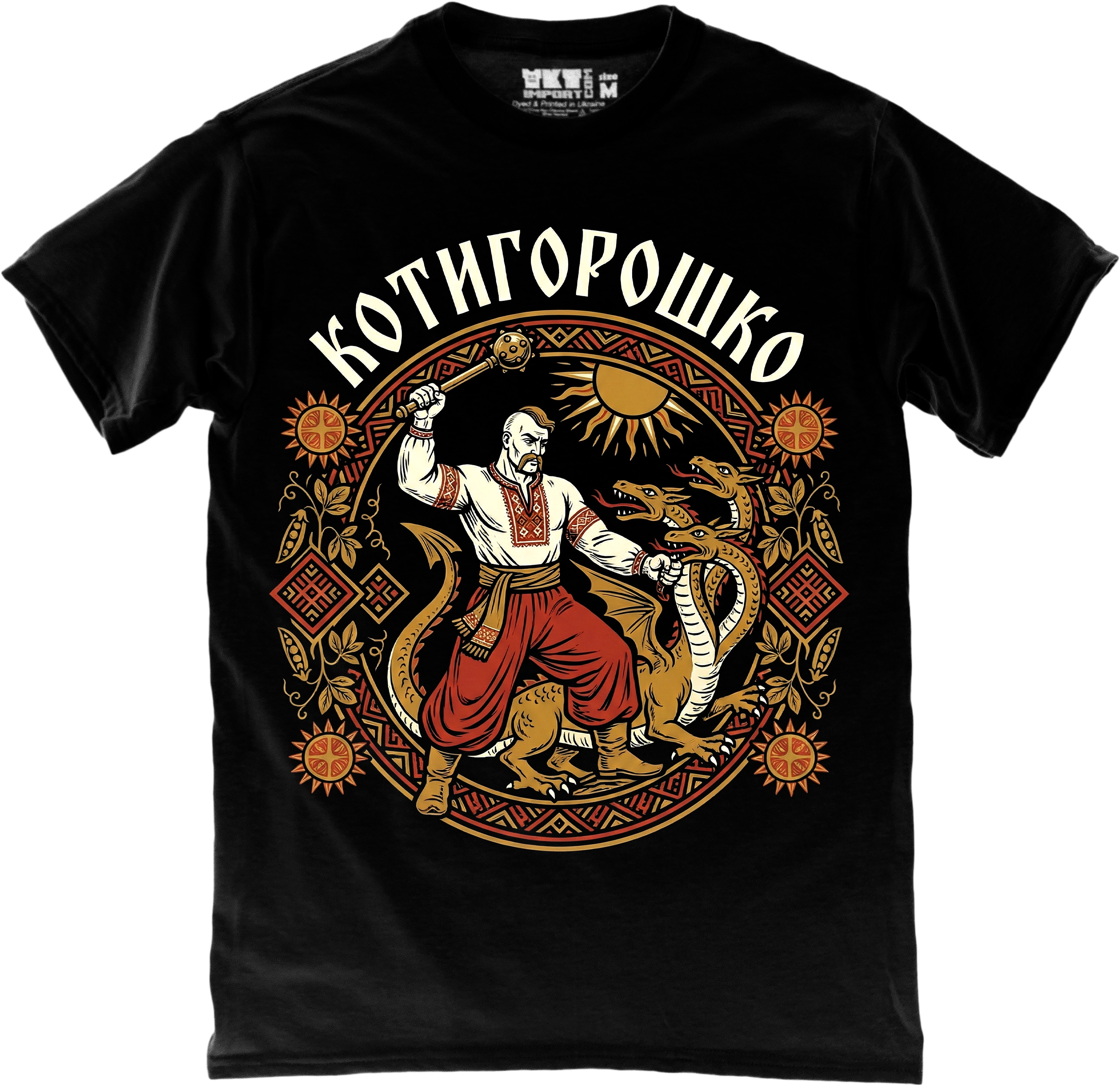 Футболка з образом Котигорошка — символом дії, сили та перемоги над загрозою. Український народний герой без фентезійних прикрас.
