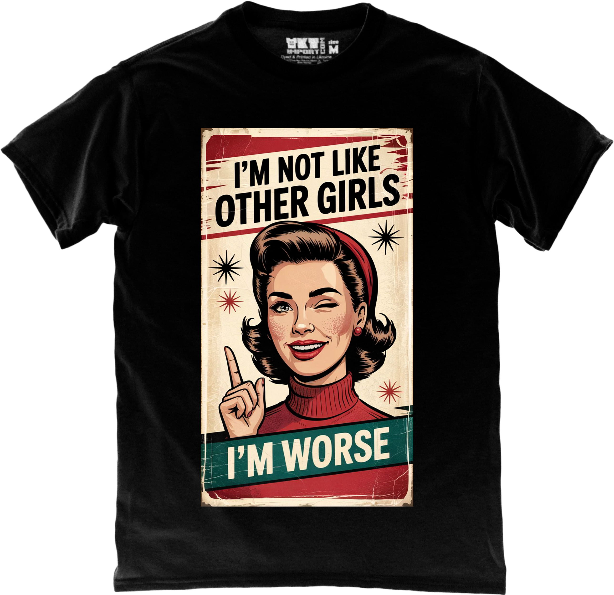 Легка футболка з іронічним вінтажним принтом для тих, хто не прагне бути «як усі». Комфортна в носінні та помітна в образі — саме те, щоб заявити про свій характер.