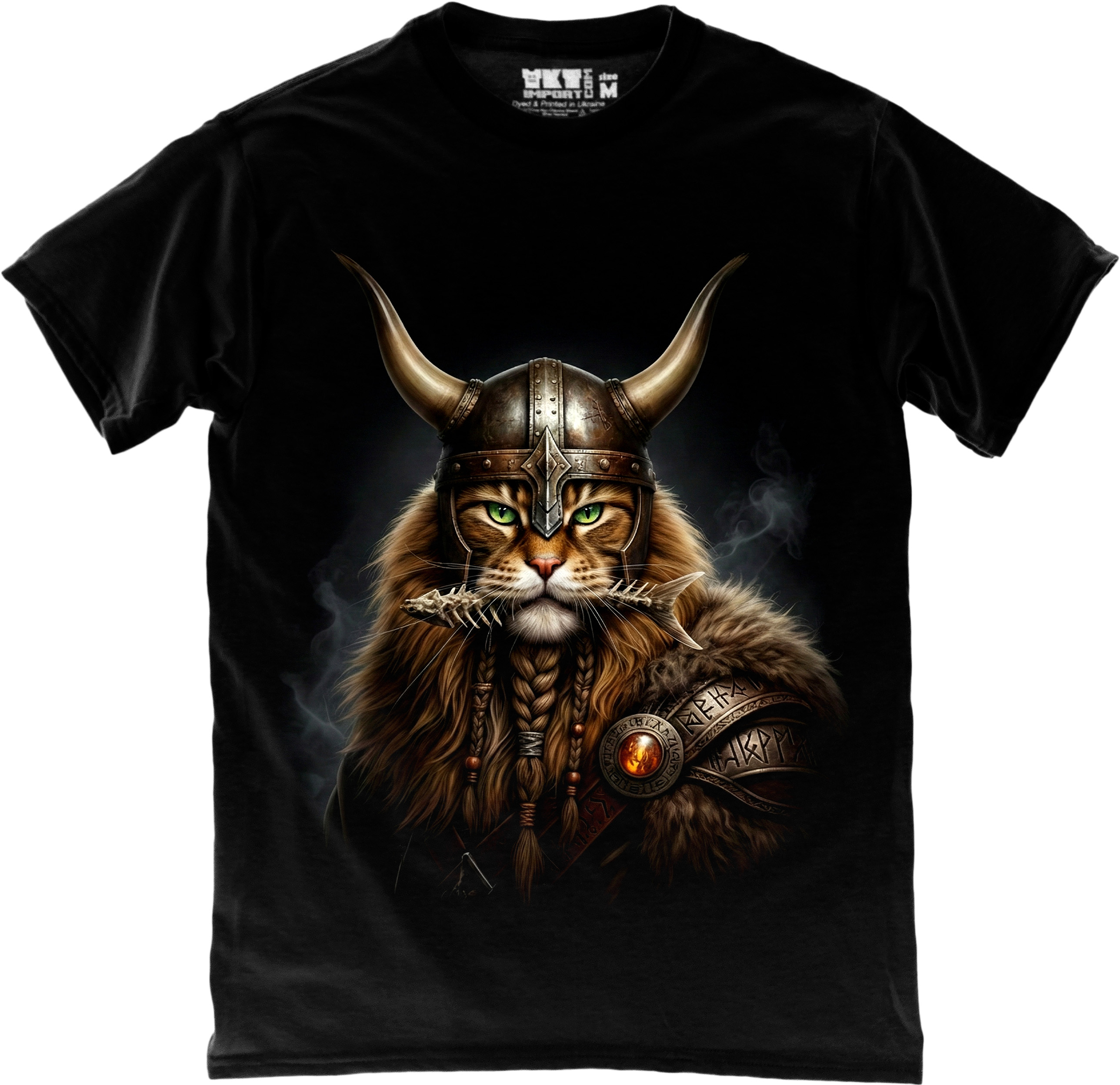 Футболка з епічним образом кота-вікінга — символ сили, незалежності та дикого характеру. Для тих, хто воює по-своєму і не просить дозволу.
