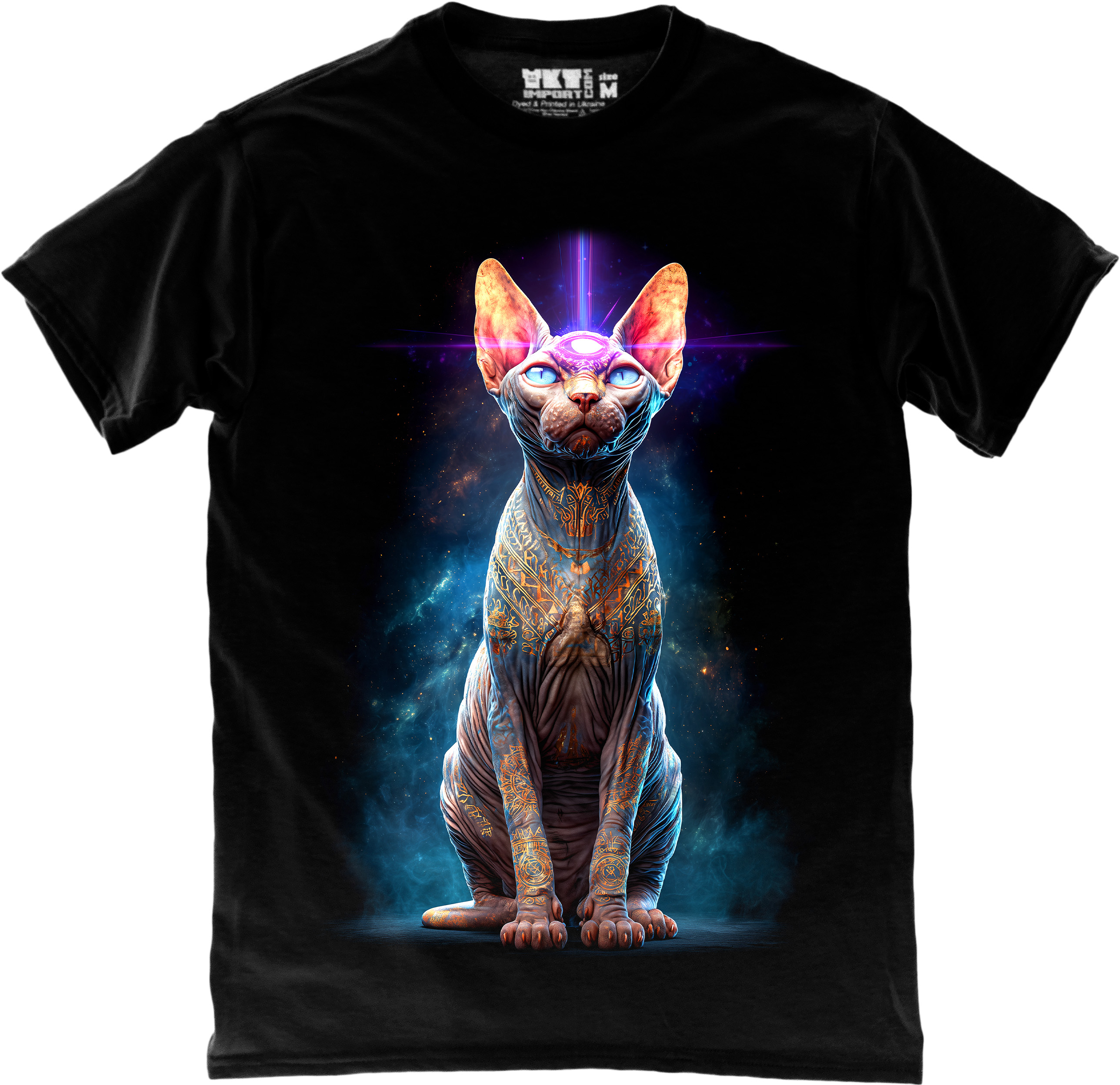 Футболка з містичним образом космічного сфінкса — символ енергії, інтуїції та внутрішньої сили. Яскравий неон-акцент і глибокий всесвітній фон створюють ефект, який неможливо ігнорувати.