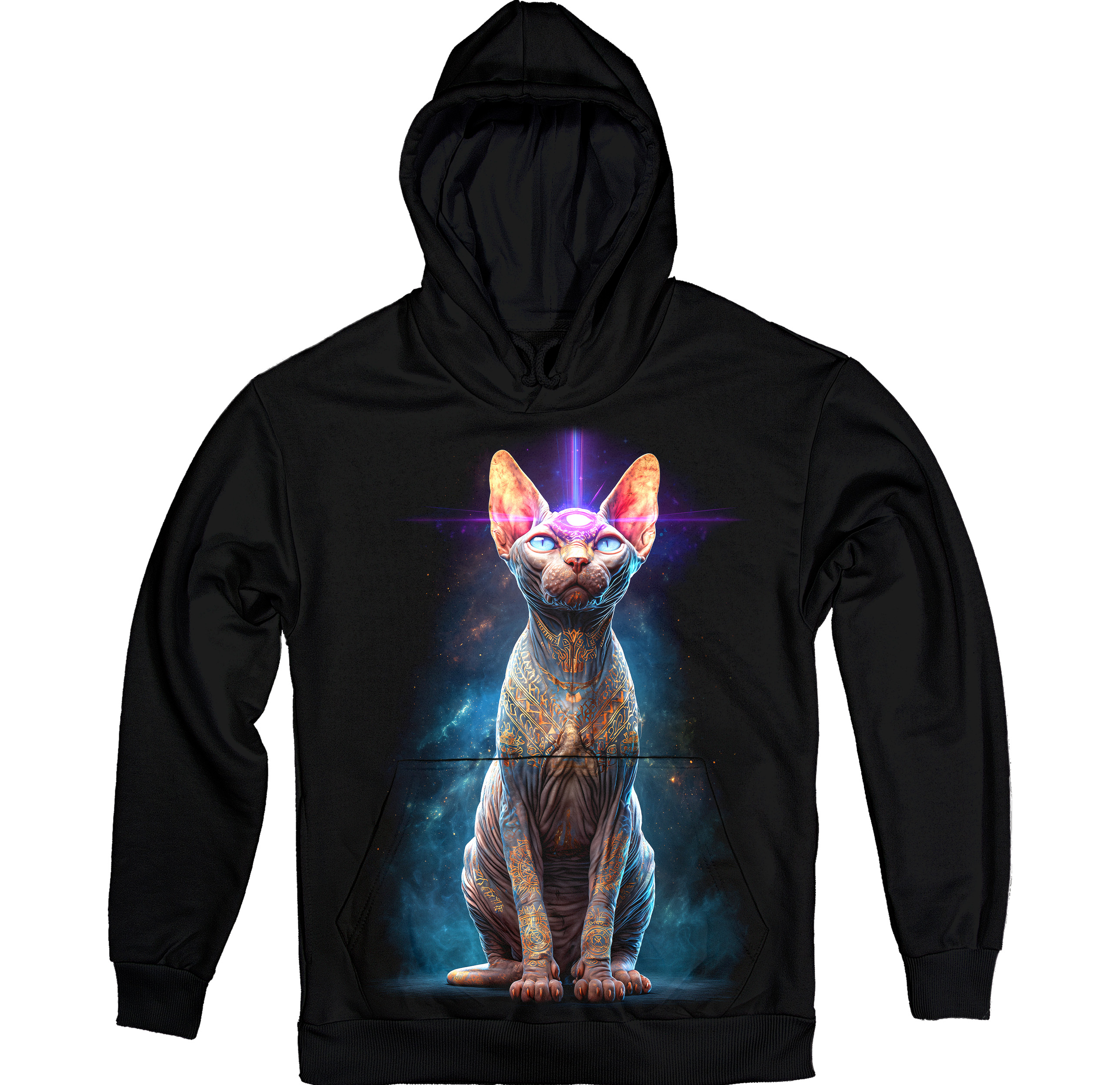 Тепле худі з атмосферою космічної містики. Глибокі кольори, світлові акценти й образ сфінкса додають образу загадковості та сили.