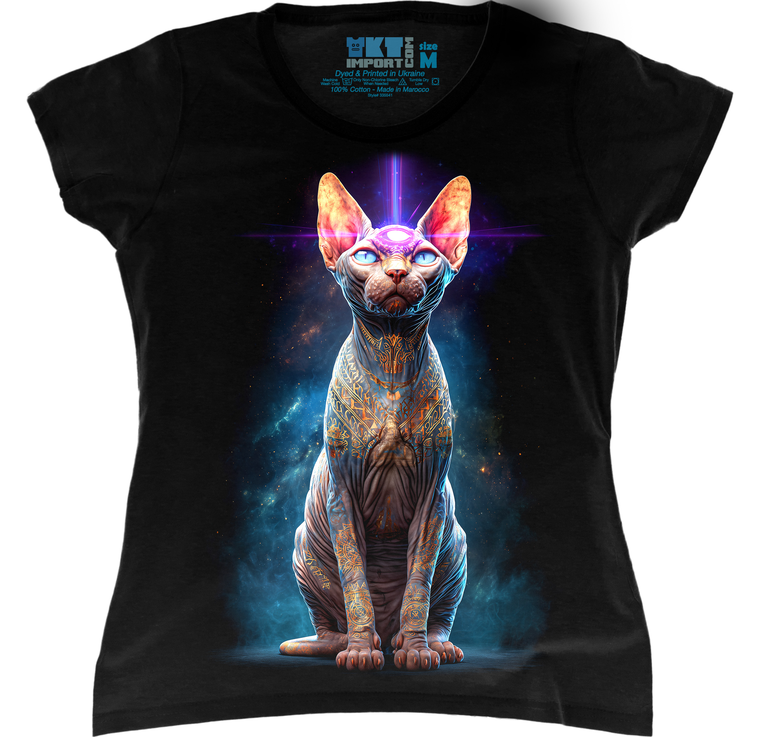 Жіноча футболка з футуристичним принтом і сакральним настроєм. Дизайн підкреслює незалежність, харизму та тонке відчуття стилю.