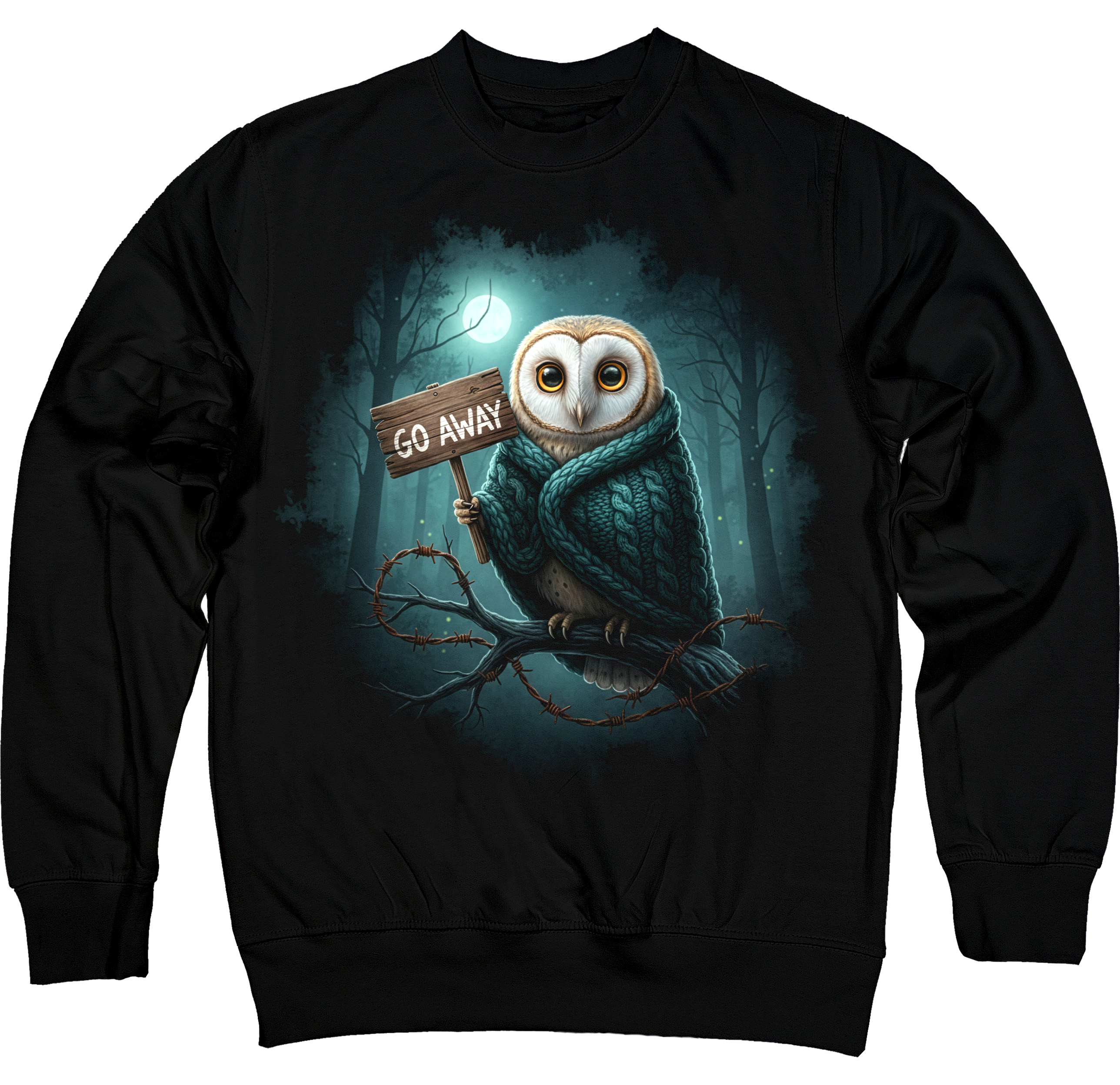 Світшот із темною лісовою естетикою та харизматичною совою. Стильний варіант для тих, хто обирає затишок і легкий тролінг.
