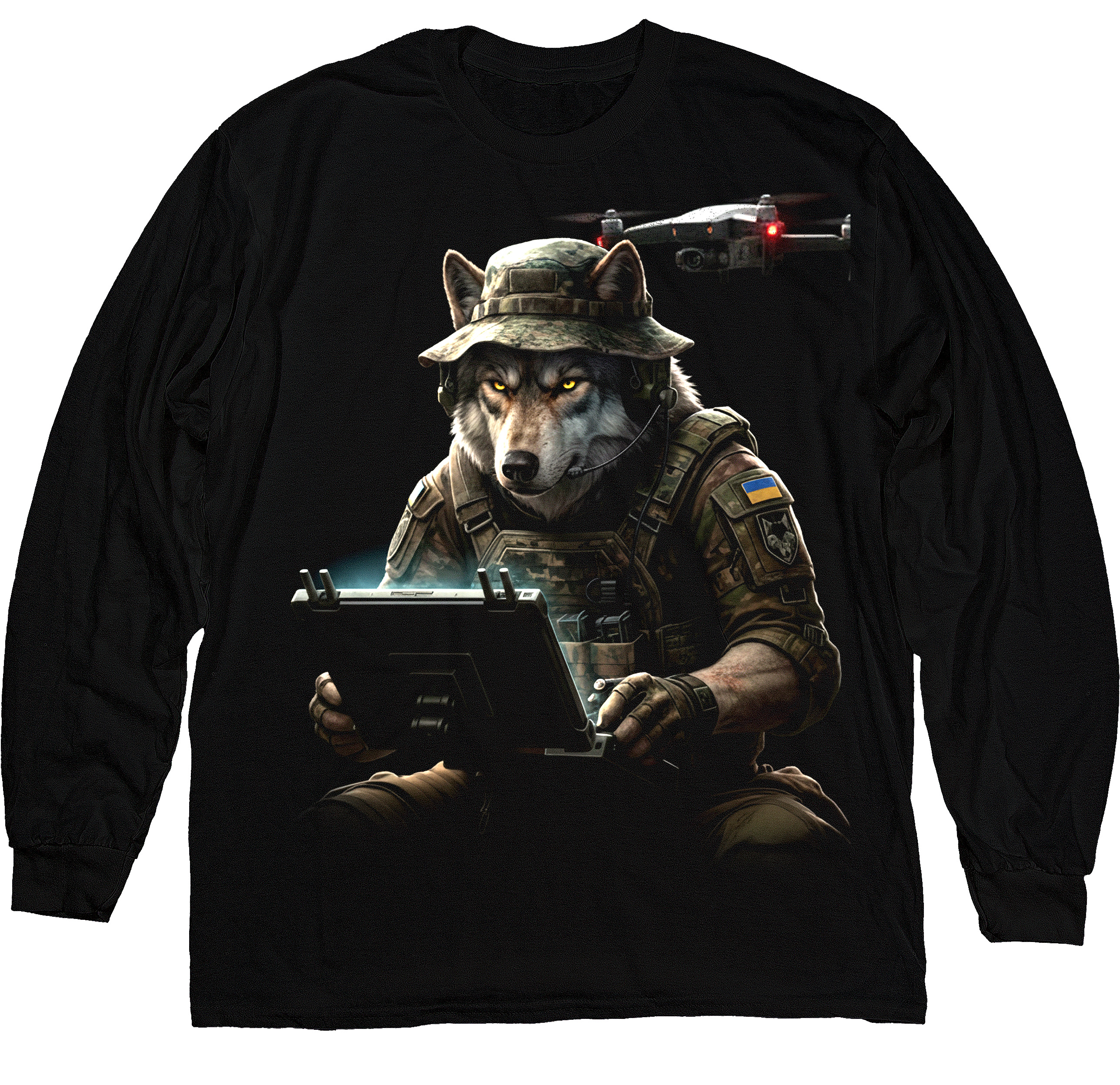 Лонгслів із чітким, мужнім характером і сучасною воєнно-технологічною естетикою. Стриманий формат із потужним меседжем.