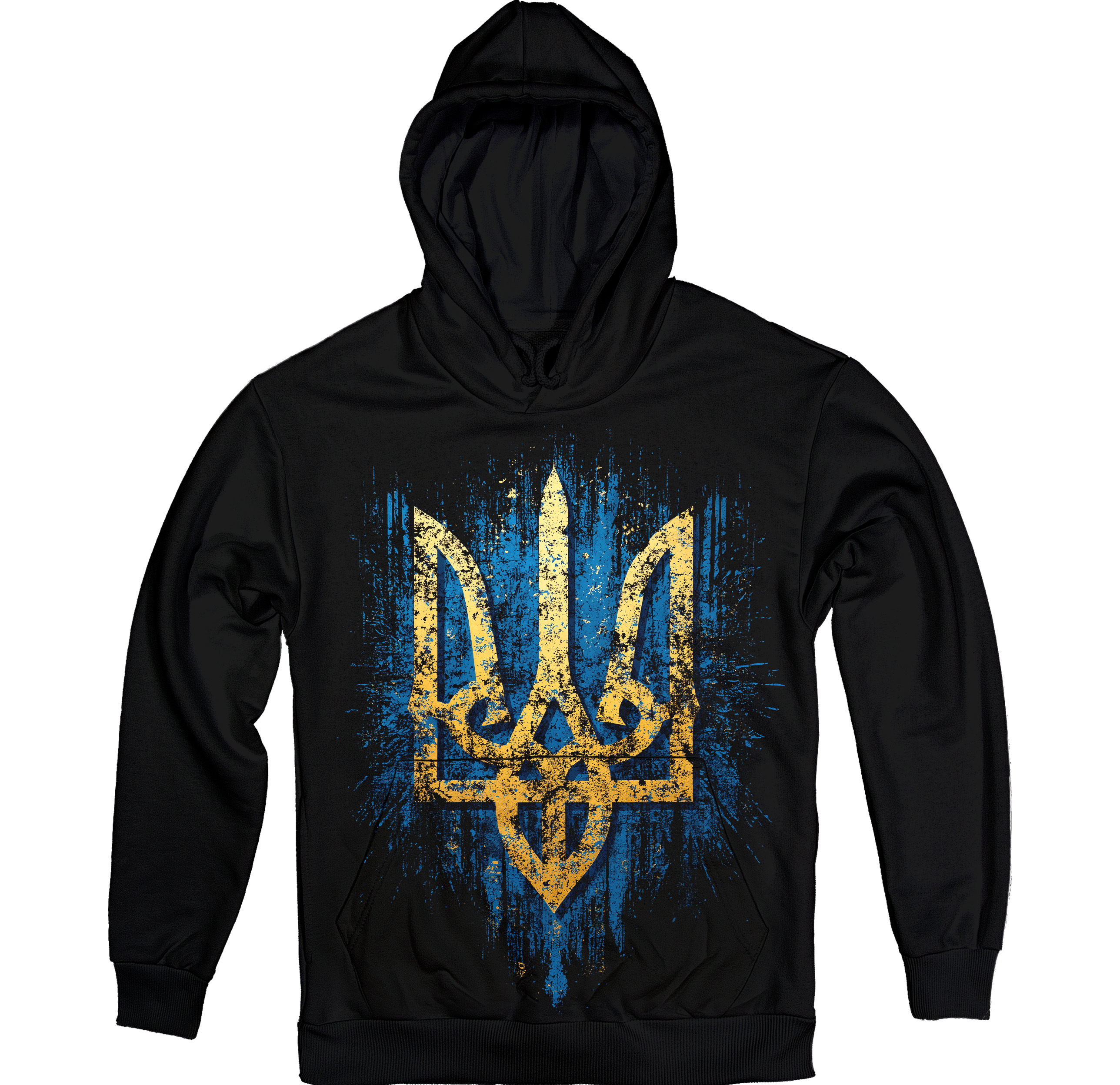 Тепле худі з яскравим принтом тризуба у патріотичному стилі. Ефектний дизайн у кольорах України робить модель виразною, сучасною та символічною.