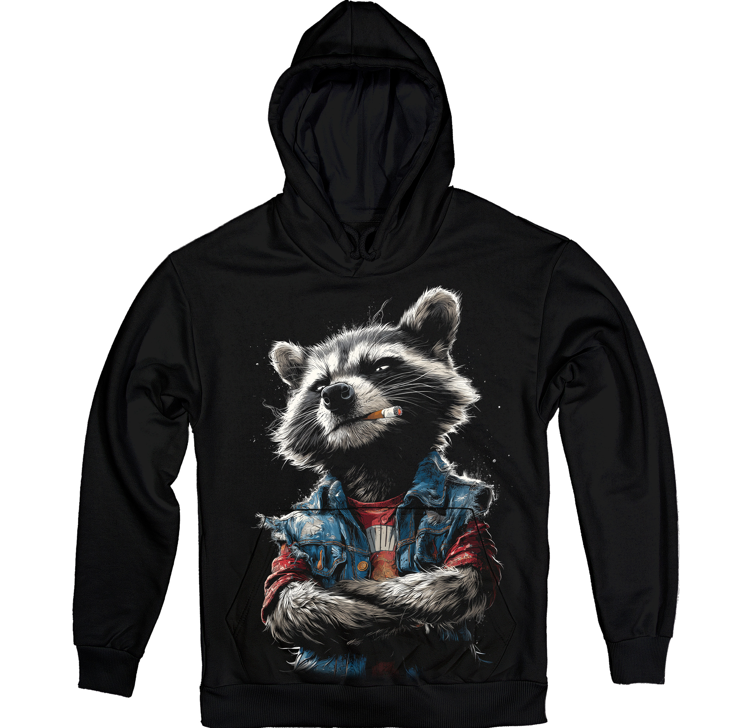 Тепле худі з виразним принтом єнота в бунтарському стилі. Модель додає образу настрою, індивідуальності та легко стає головним акцентом у гардеробі.