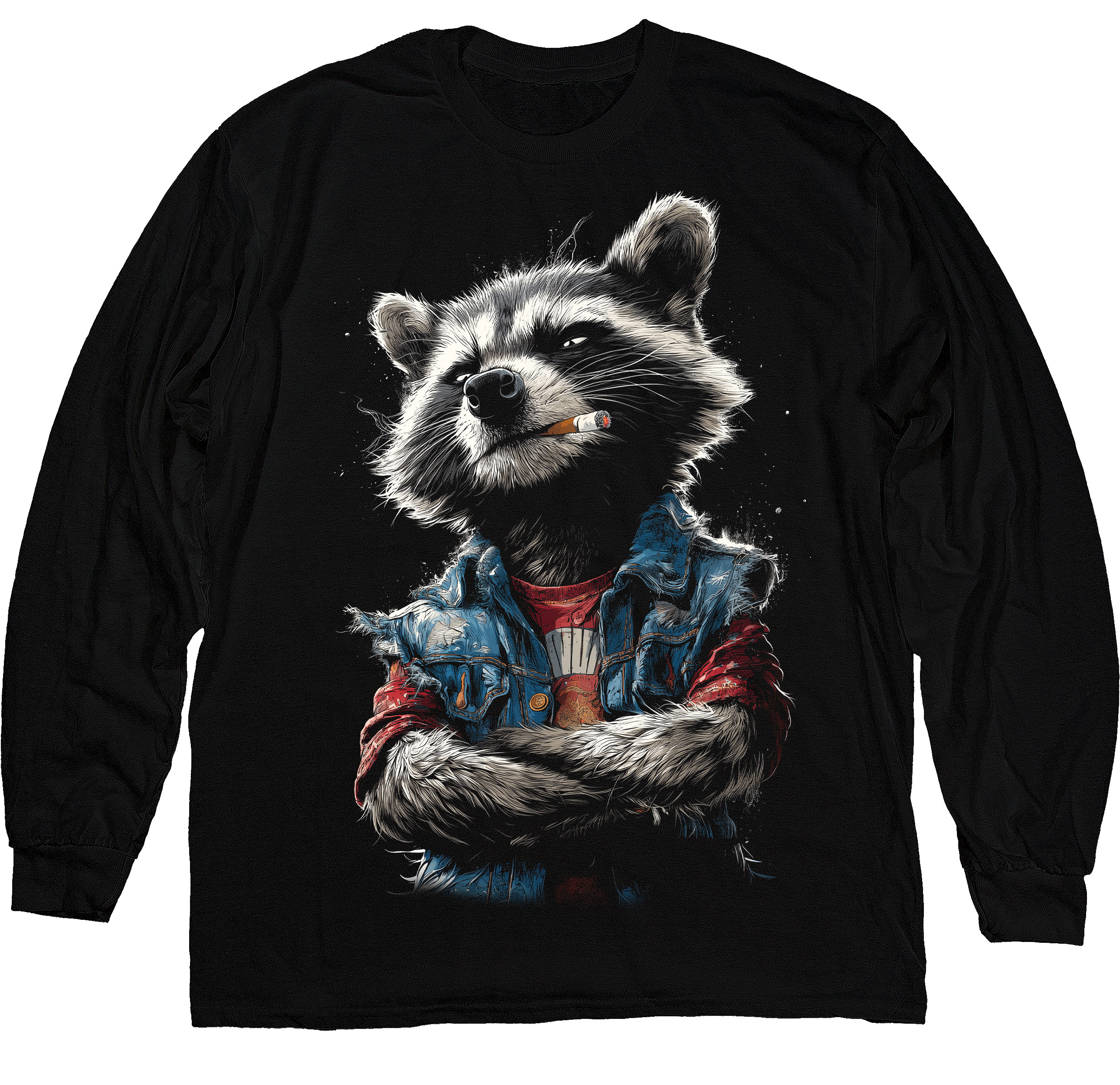 Стильний лонгслів із оригінальним принтом єнота з характером. Поєднує зручність, сучасний стиль і трохи зухвалого настрою в одному дизайні.