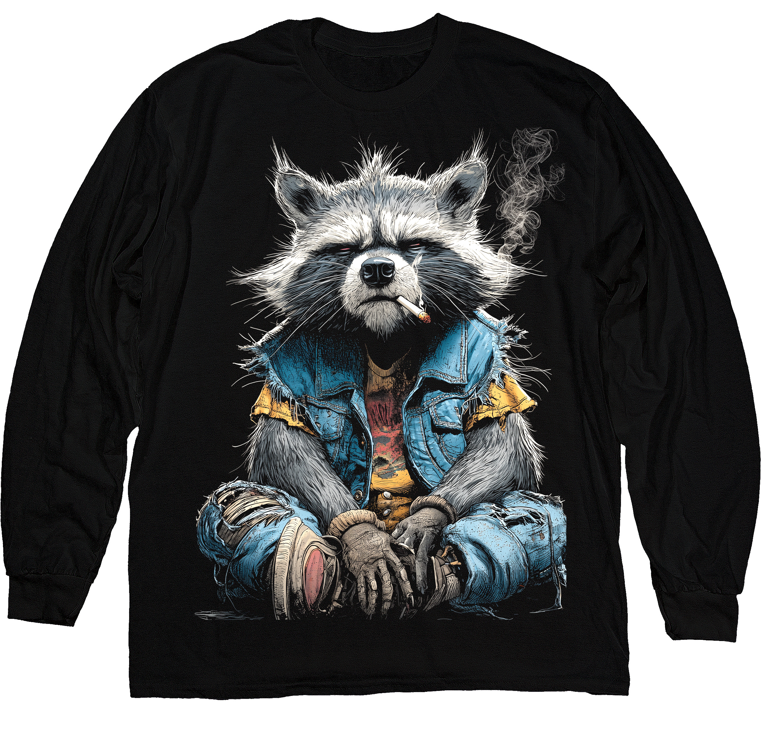 Стильний лонгслів з оригінальним принтом єнота у бунтарському стилі. Поєднує комфорт, сучасний дизайн і трохи зухвалого настрою в одному образі.