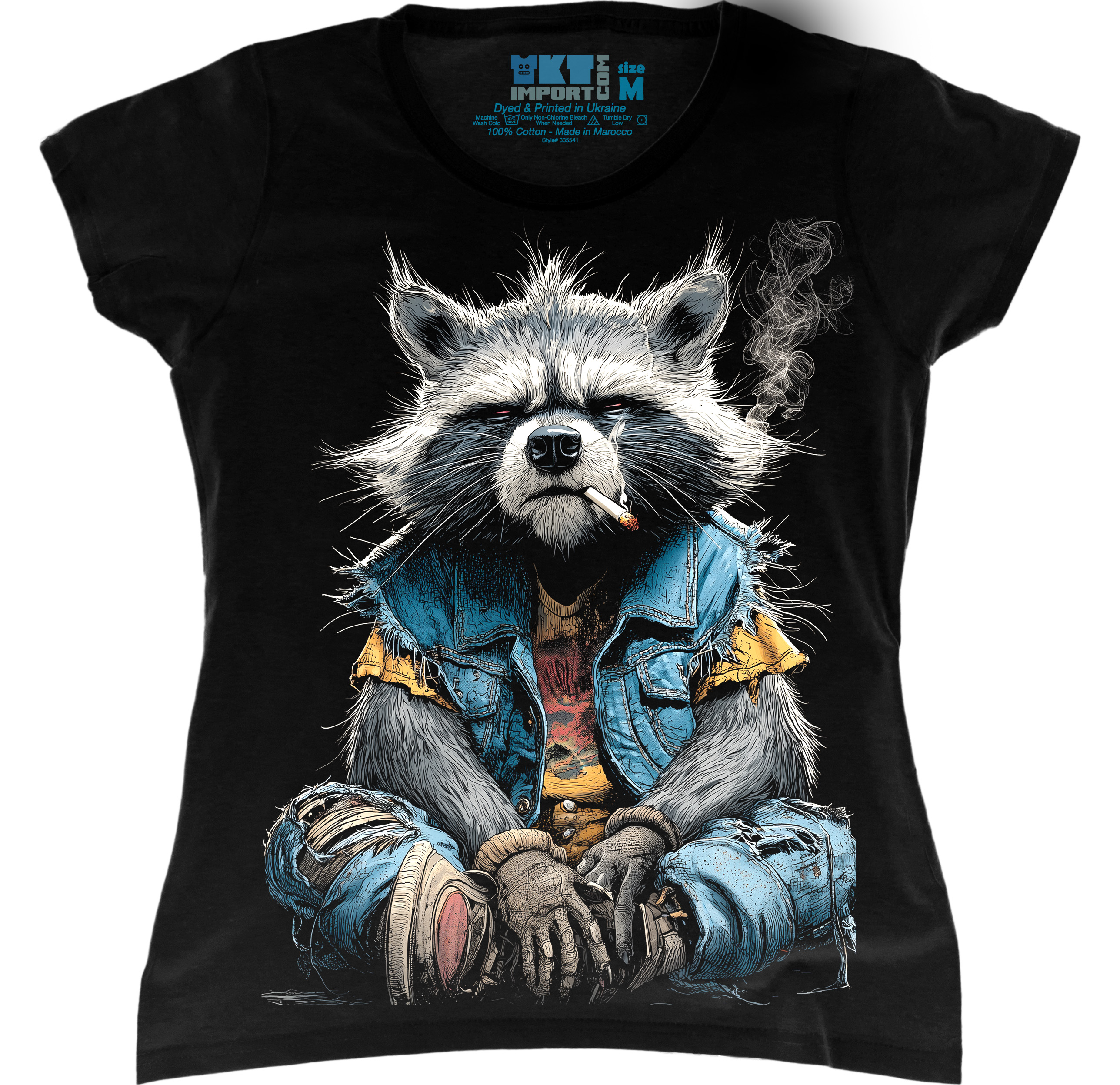 Жіноча футболка з ефектним принтом харизматичного єнота, який виглядає сміливо та нестандартно. Чудовий вибір для тих, хто любить стильні речі з настроєм і характером.
