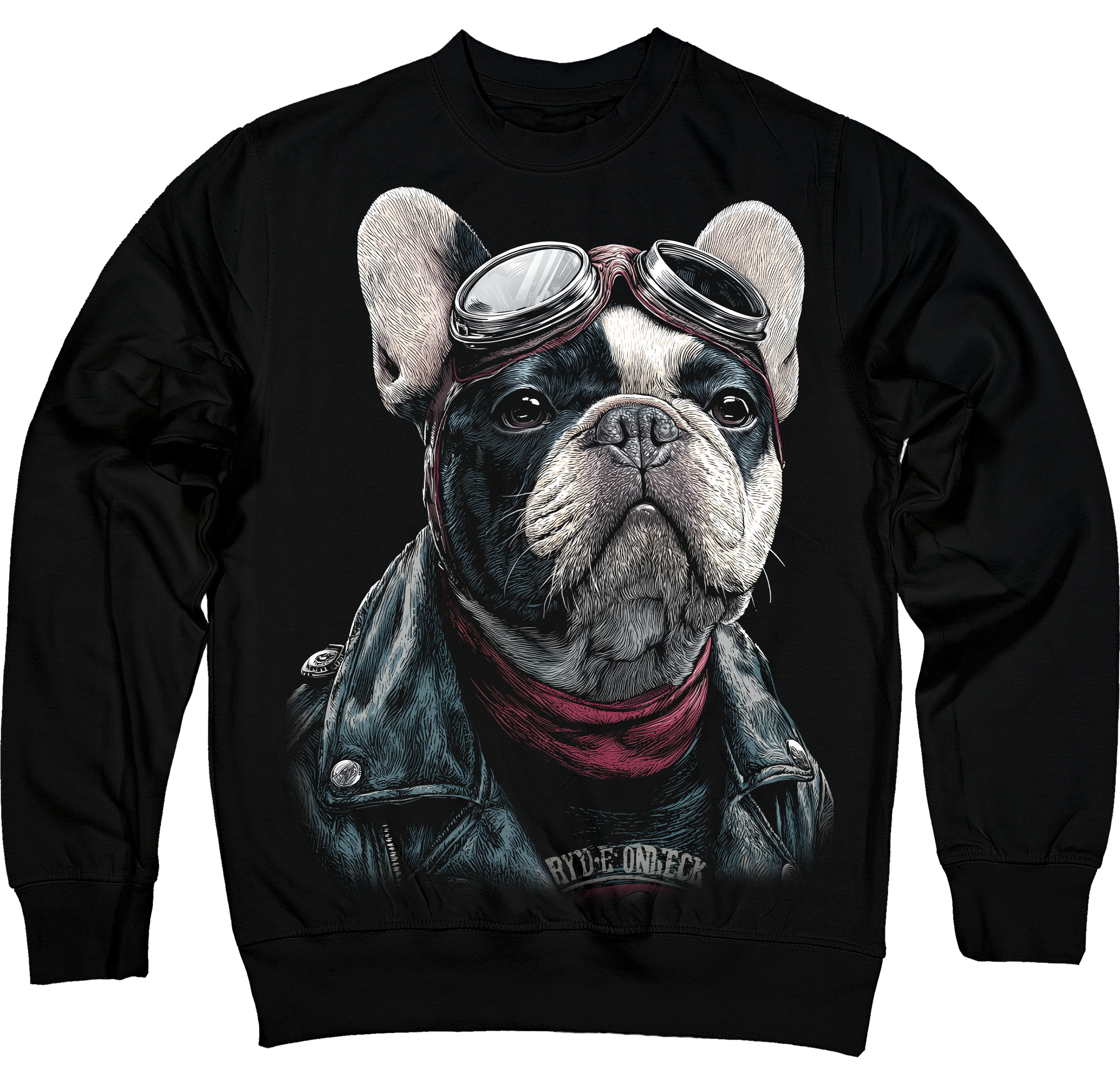 Комфортний світшот із виразним принтом харизматичного бульдога в окулярах пілота. Поєднує зручність, стиль і легкий дух свободи в одному дизайні.