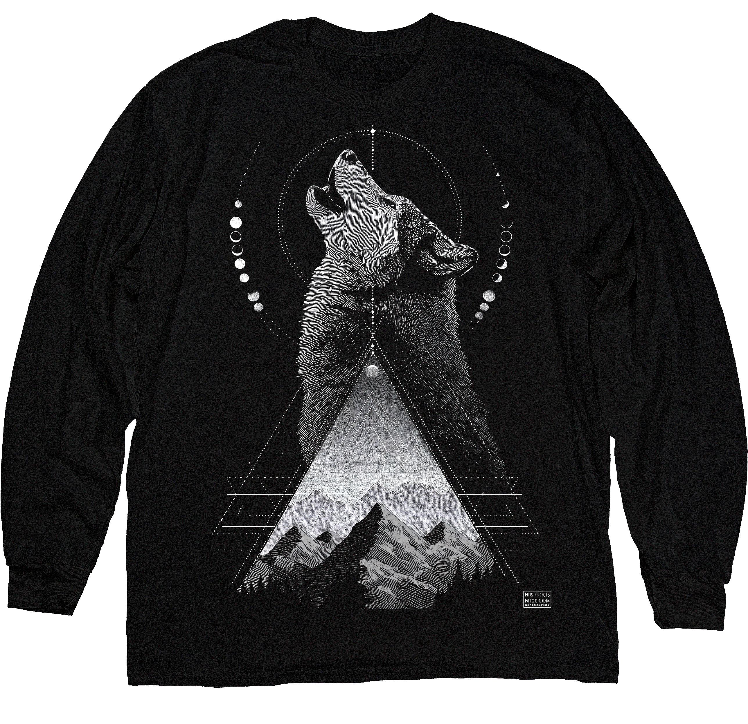 Стильний лонгслів з атмосферним принтом вовка, що символізує свободу, силу та незалежність. Вдалий вибір для повсякденного образу з характером.