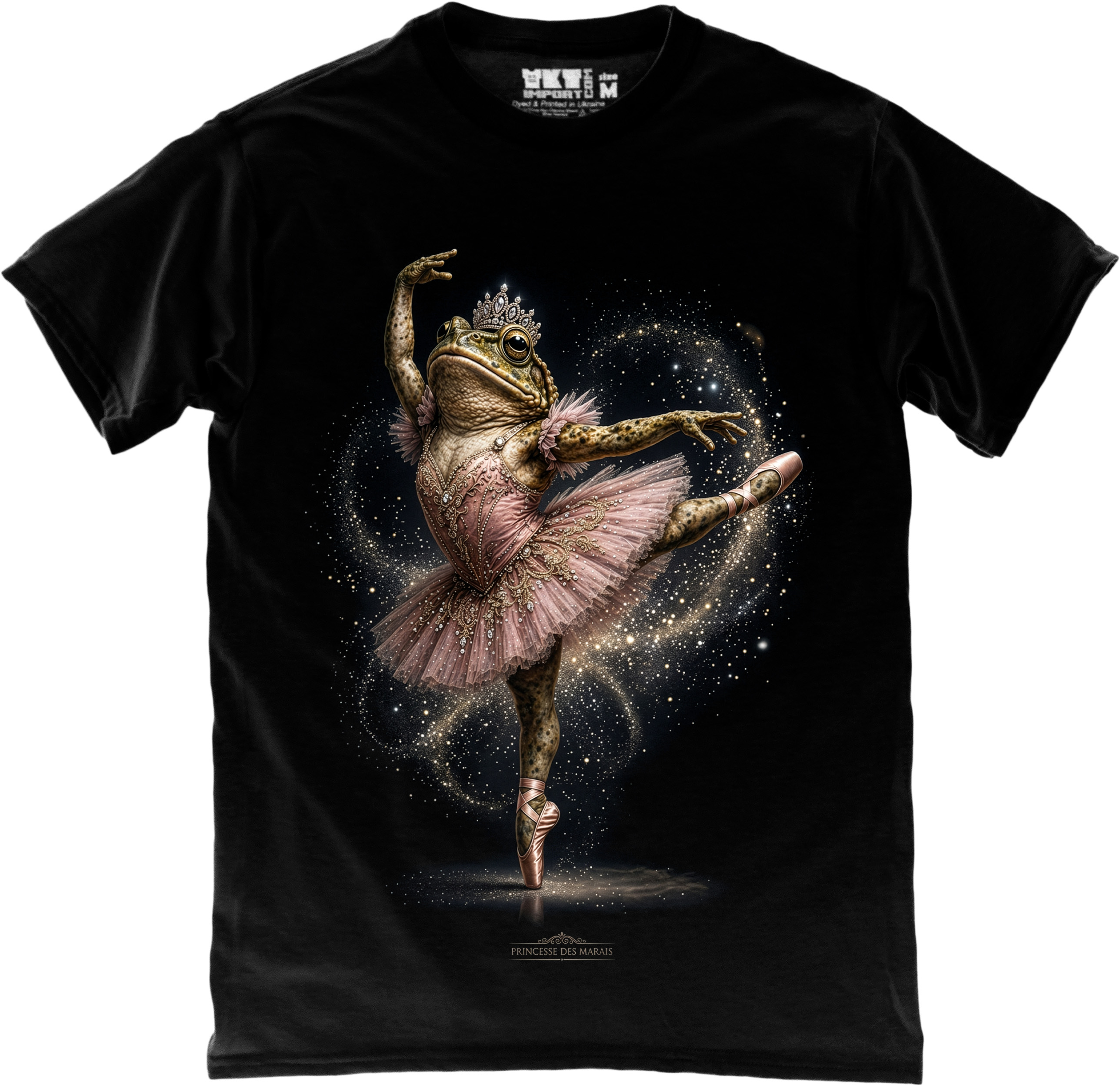 Яскрава футболка з кумедним і водночас елегантним принтом жабки в образі балерини. Поєднання гумору та витонченості робить дизайн унікальним і дуже привабливим.
