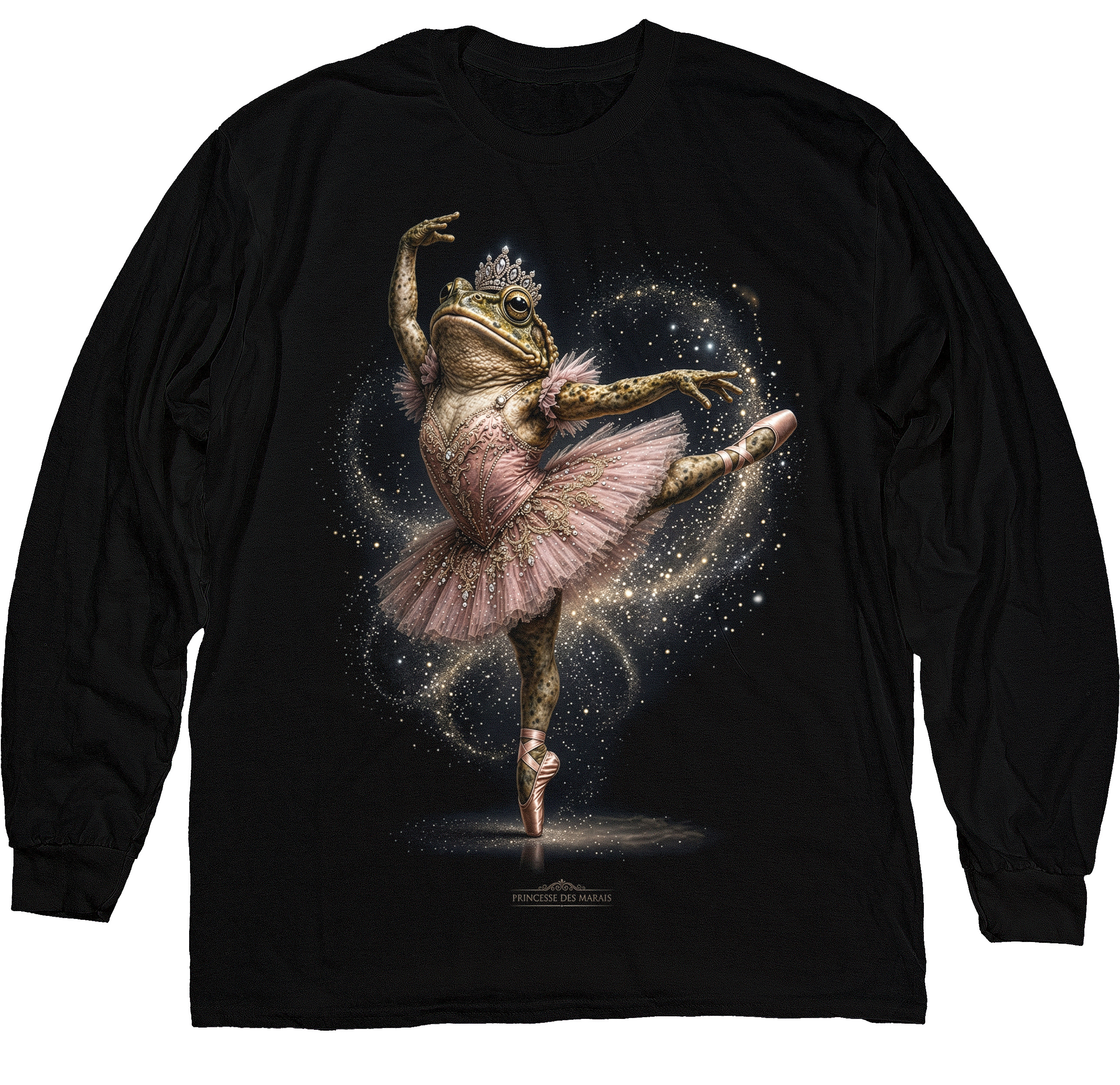 Стильний лонгслів з оригінальним принтом жабки в балетному образі. Поєднує комфорт, ніжність і легкий гумор.